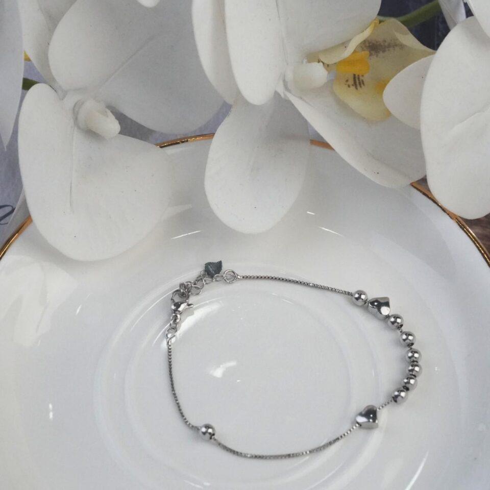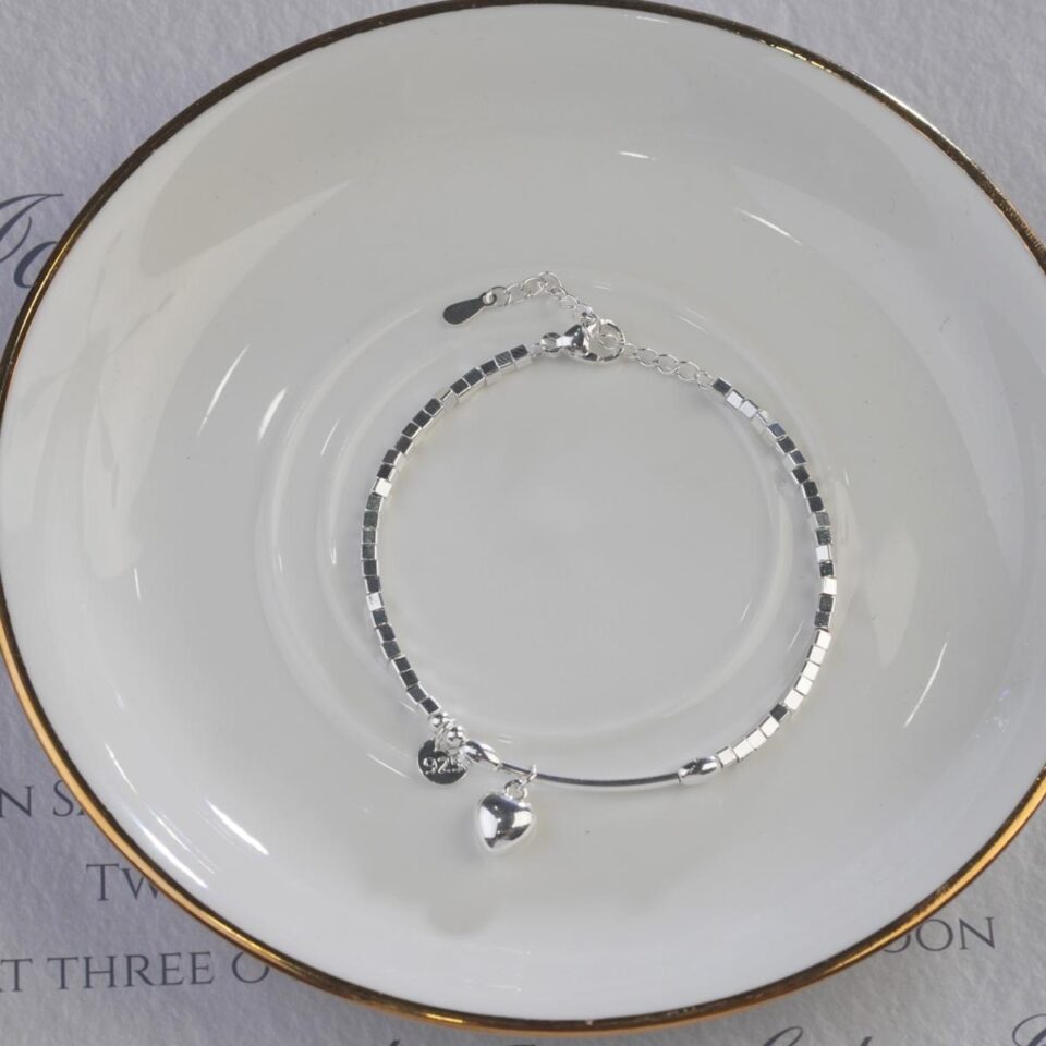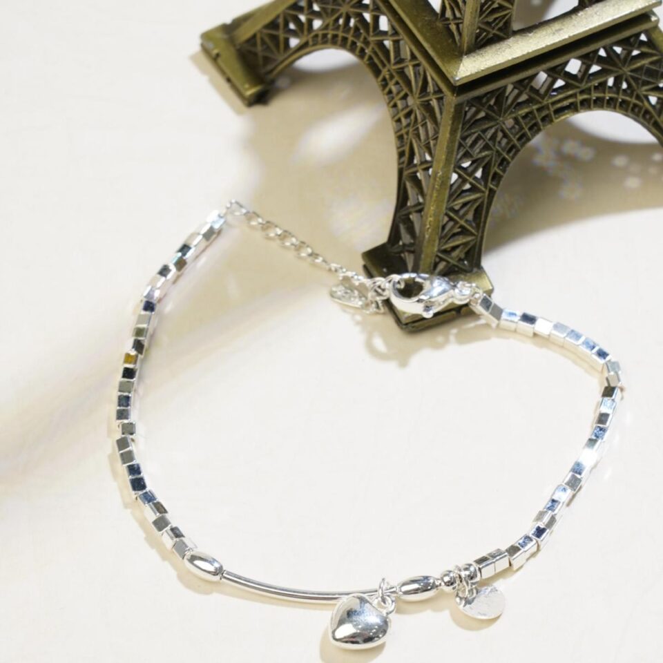 【Bracelet】Geometric Square Beads Chain Bracelet with Heart&Disc Pendants, Romantic Jewelry for Daily