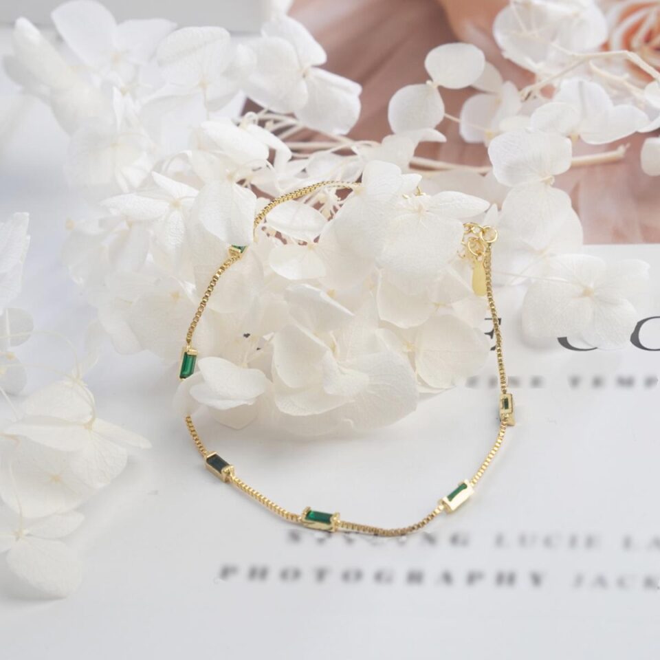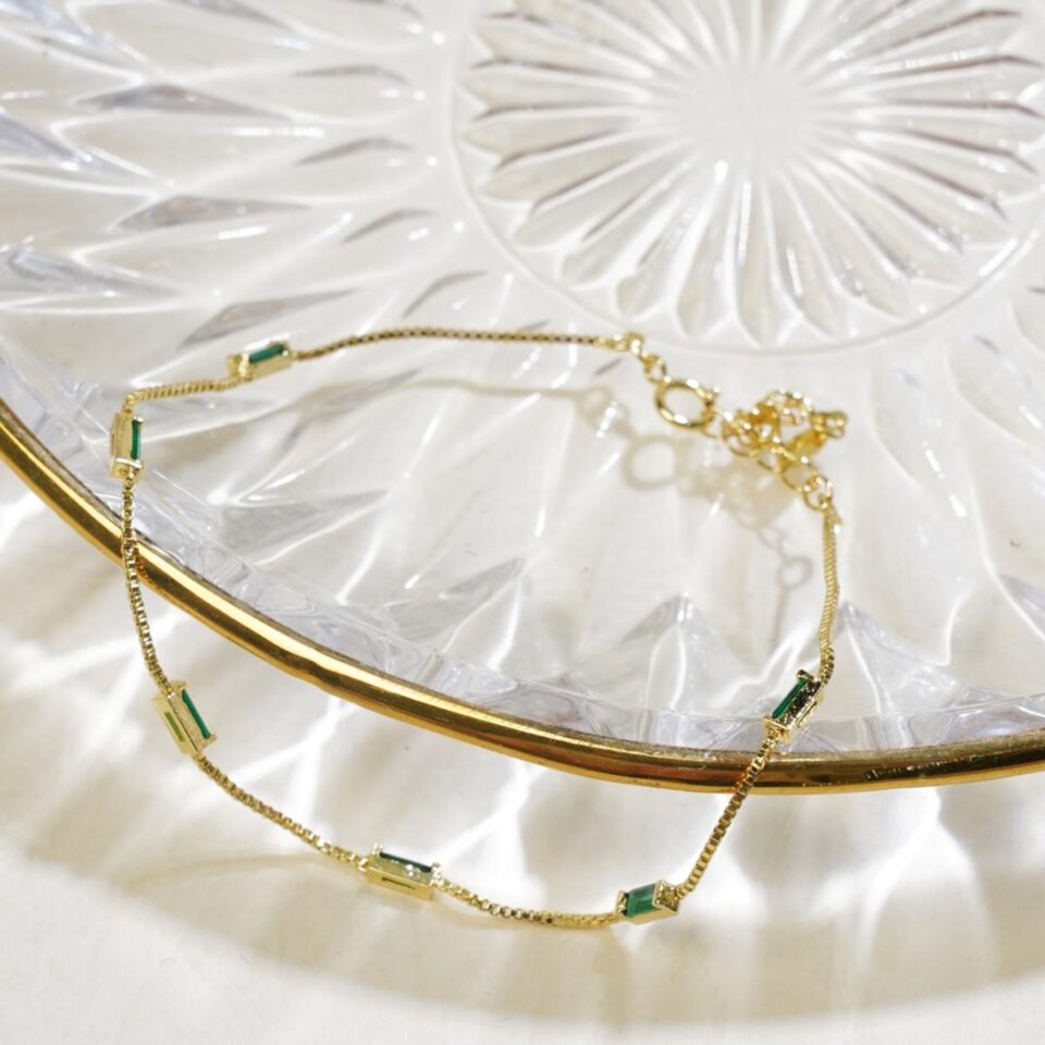 【Bracelet】Gold Plated Chain Bracelet with Green Gem, Trendy & Minimalist, Perfect for Fashion Women