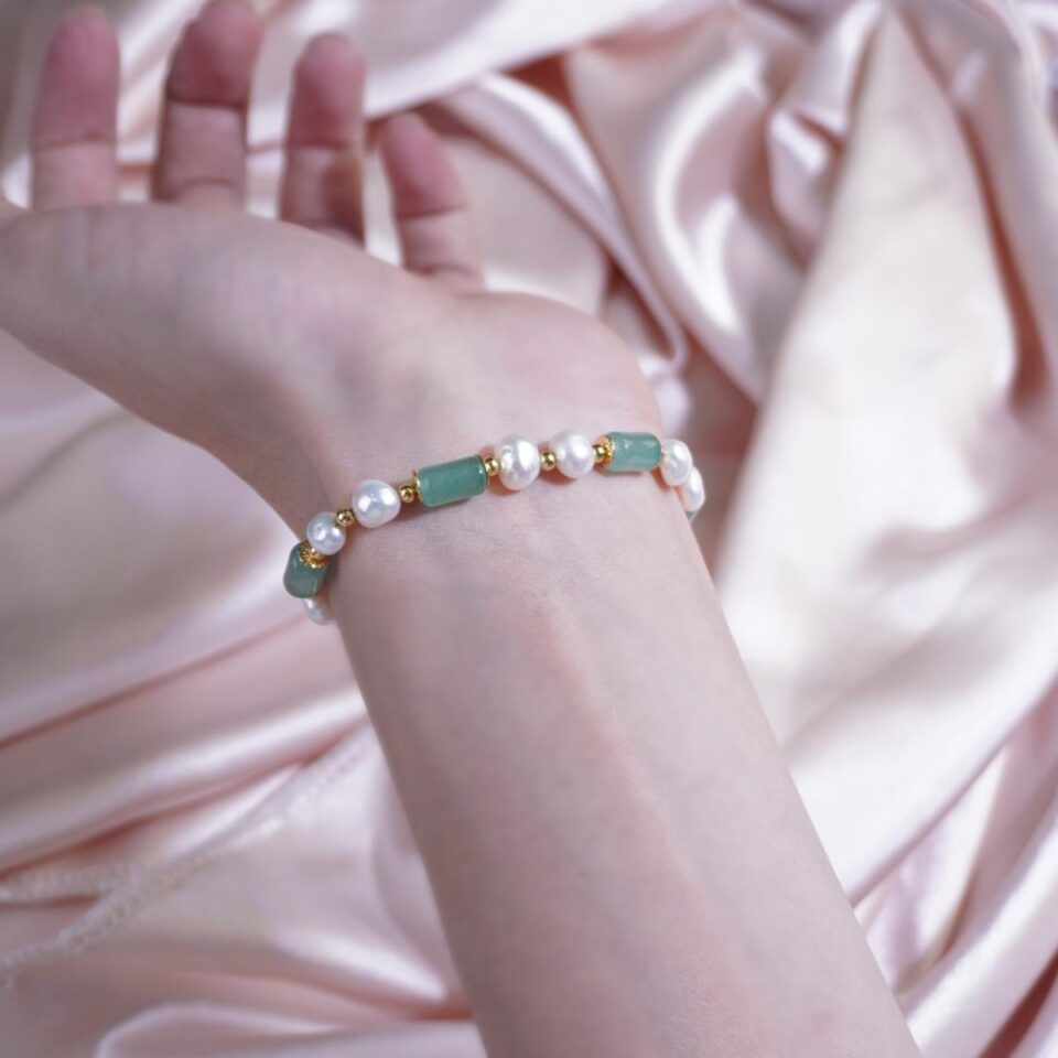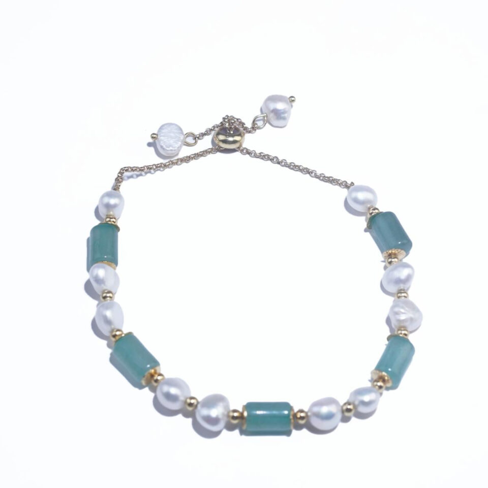 【Bracelet】Elegant Pearl & Green Chalcedony Bracelet, Stylish Daily Wear for Fashion Lovers