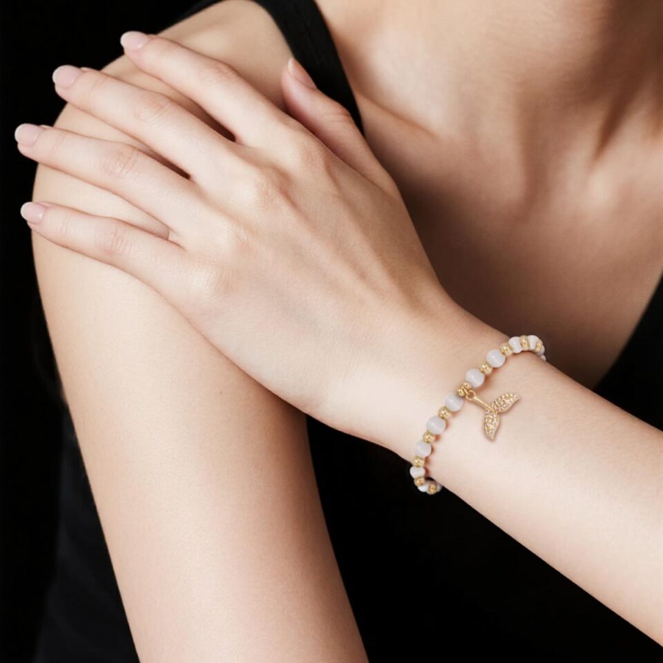 【 Bracelet】Cat’s Eye Stone Bracelet with Zircon Mermaid Tail, Elegant & Romantic for Daily Wear & Gifting