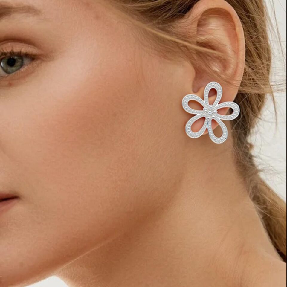 【Stud Earrings】Zircon Inlaid Hollow Flower Earrings, Romantic & Fresh, Ideal for Women Loving Sweet Styles