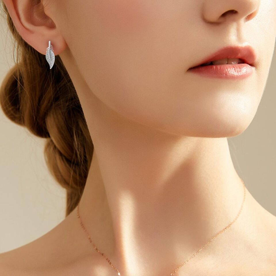 【Stud Earrings】Zircon Inlaid Feather Stud Earrings, Light & Sparkly, Ideal for Women Loving Natural Style Accessories