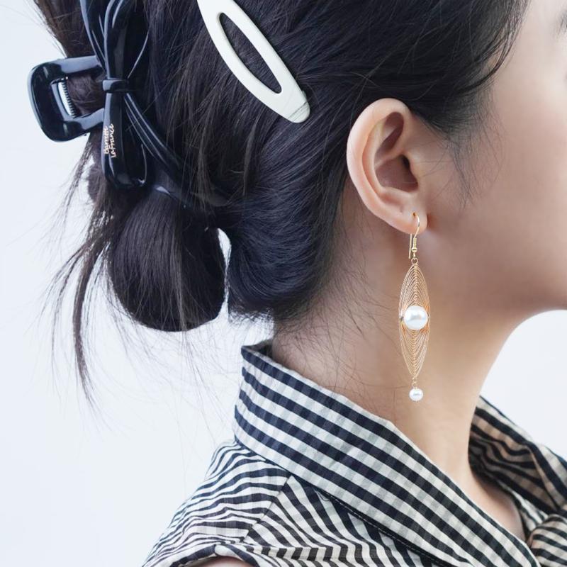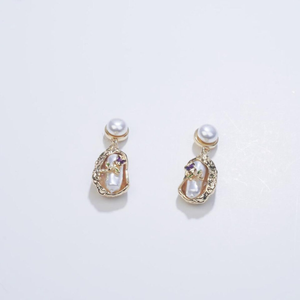 【Drop Earrings】Unique Irregular Metal Frame &Pearl Baroque Style Drop Earrings, Vintage & Elegant for Women