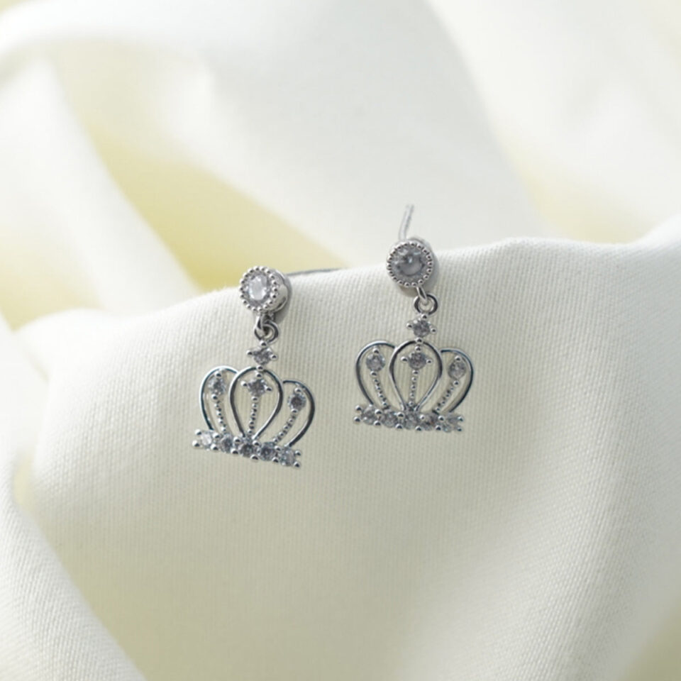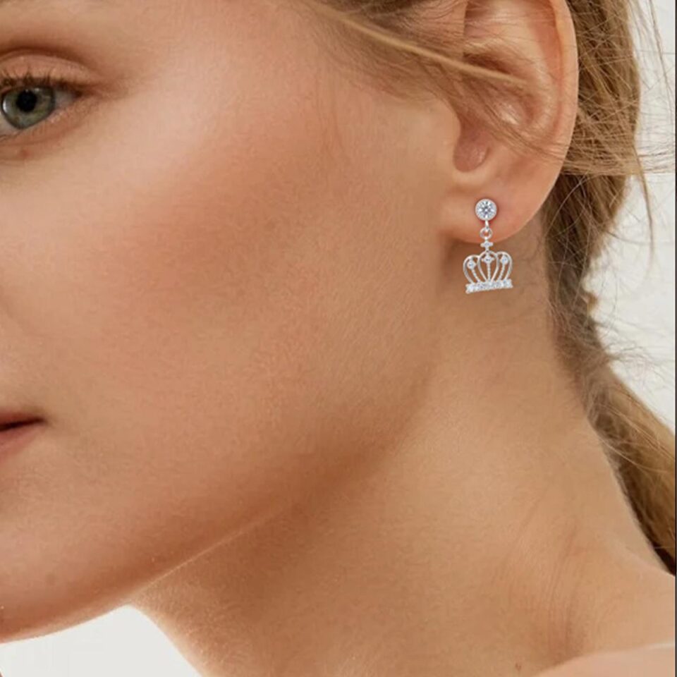 【Drop Earrings】Zircon Inlaid Crown Drop Earrings, Elegant & Sparkly, Ideal for Women Loving Delicate Style