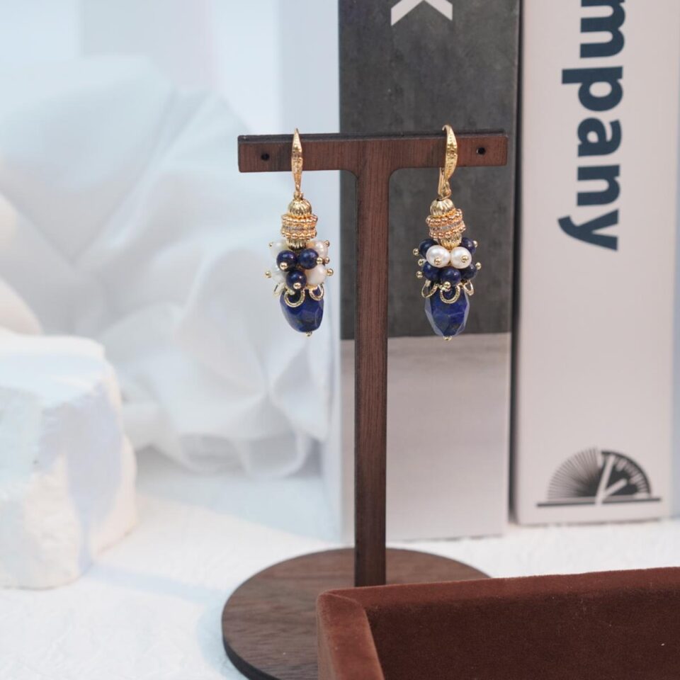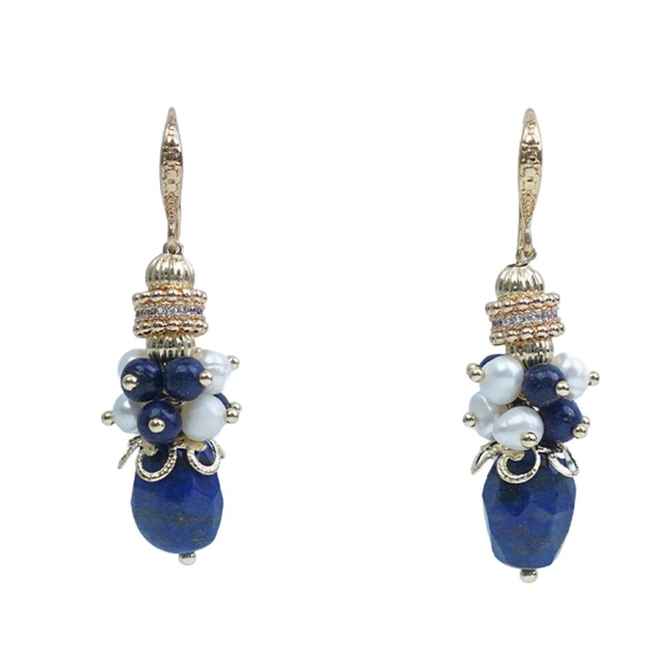 【Earrings&Necklace】Elegant Lapis Lazuli & Pearl Jewelry Set for Graceful Women, Charming Blue-White Design
