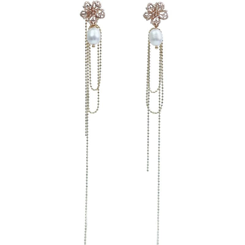 【Earrings】Elegant 18K Gold Plated Earrings with Pearl Tassel Design for Dinners & Dates, Chic Jewelry for Women