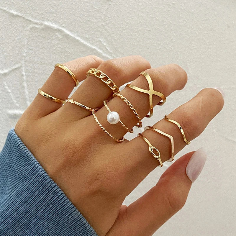 10 pcs/set Bohemian Ring Set Gold Silver Color Wide Rings For Women Girls Simple Chain Finger Tail Rings