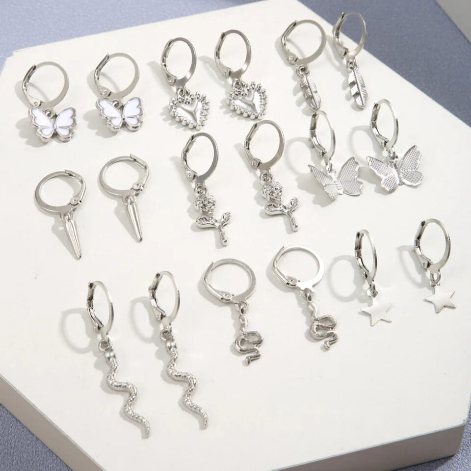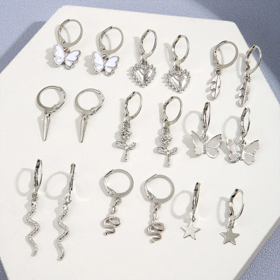 18PCS/SET Vintage Silver Color Snake Butterfly Earring Set For Women Girls Fashion Star Heart Eardrops Jewelry Trendy