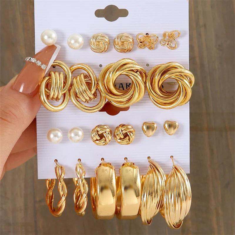Vintage Pearl Twist Hoop Earring Set For Women Metal Gold Plated Dangle Earring Heart Butterfly Geometric Earring Trendy Jewelry