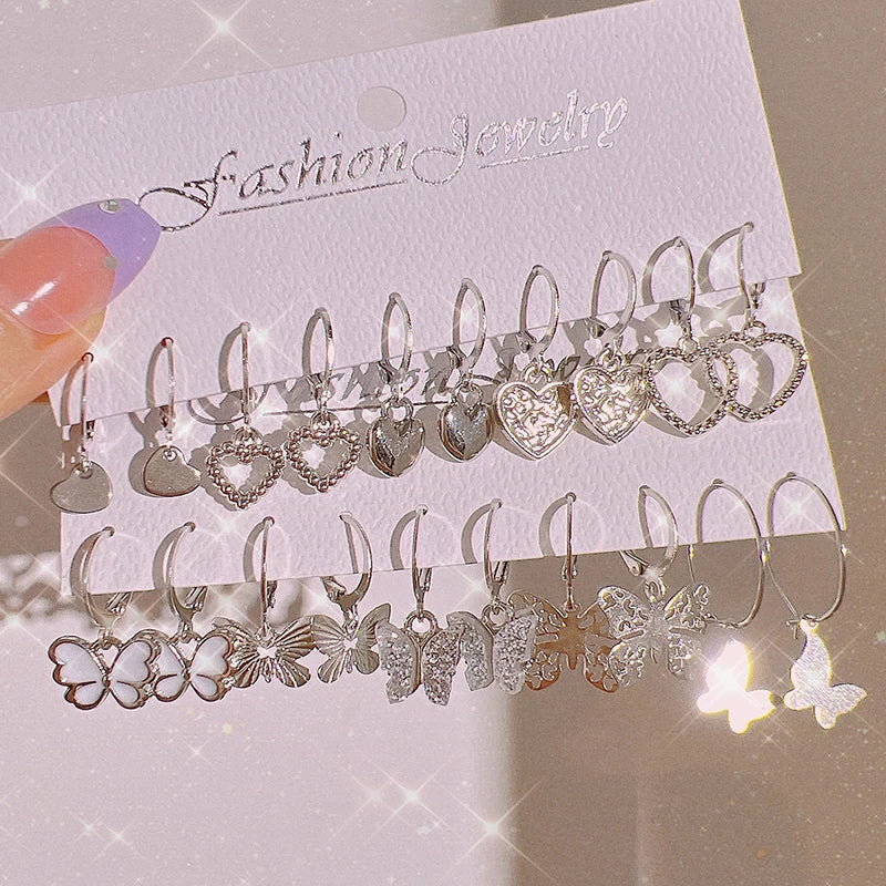 Boho Butterfly Earrings Set For Women Metal Gold Color Hollow Heart Dangle Earrings Girls Party Trendy Jewelry Gifts