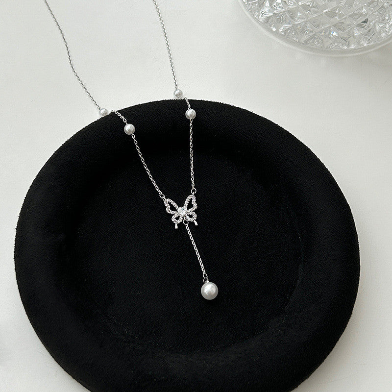 Butterfly & Pearl White Gold Necklace | Hypoallergenic Elegant Jewelry for Women | Wedding & Daily Luxury Gift