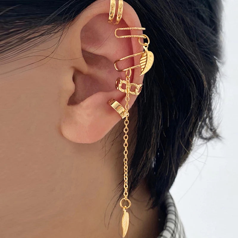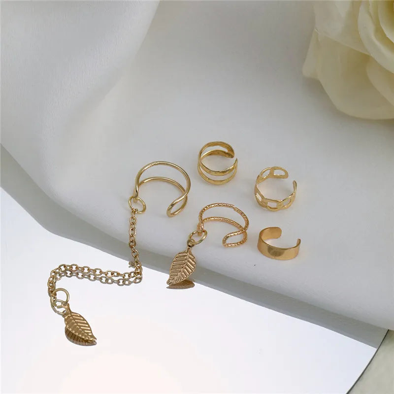 Gold Color Leaves Clip Earrings for Women Creative Simple C Butterfly Ear Cuff Non-Piercing Ear Clips Set Trendy Jewelry