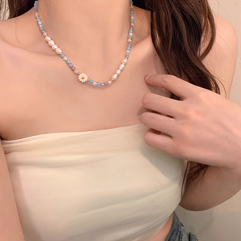 Floral Fantasy, Chic Daisy Charm Necklace Set for Women – Colorful, Versatile Fashion Accessory for Everyday & Vacation Wear