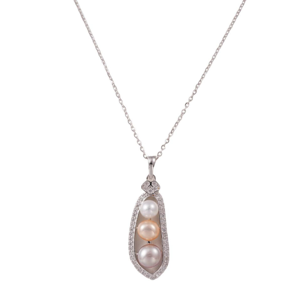 【Pendant Necklace】Silver-Made Pea Pod Shape Natural Freshwater Pearl Pendant Necklace, Delicate Jewelry for Women, Natural Love