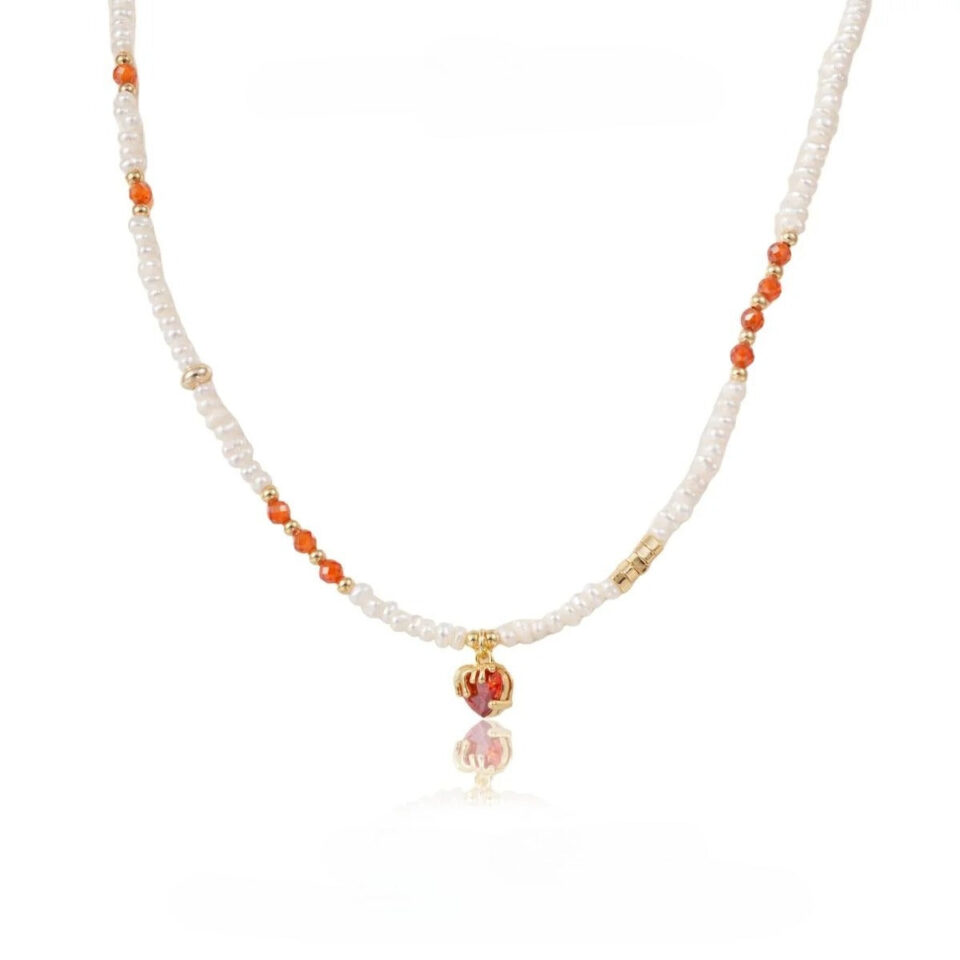 【Pendant Necklace】Red Crystal Copper Chain Natural Freshwater Pearl Beaded Pendant Necklace, Retro Elegant Jewelry Gift for Women