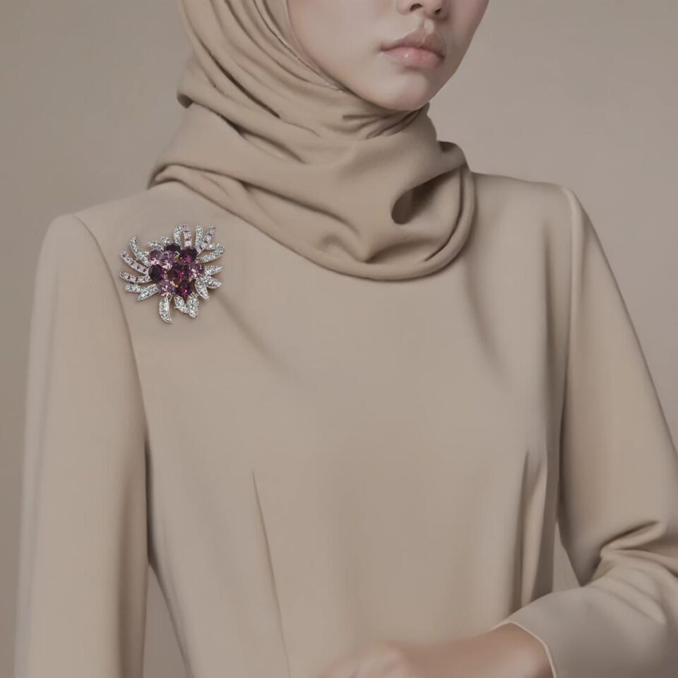 Purple Gem Blossom Brooch – Leaf Design with Sparkling Accents for Women (Festival Accessory)