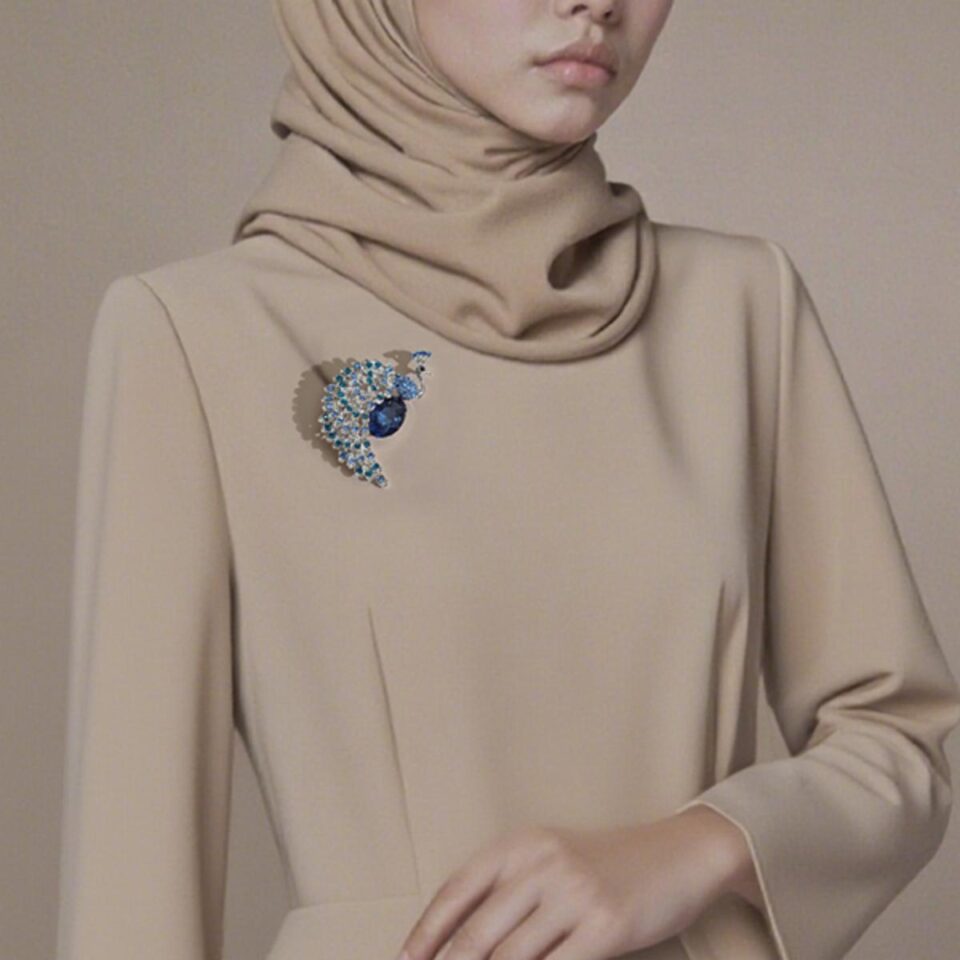 Regal Peacock Brooch – Alloy Blue Zircon, Royal Glamour for Elegant Women
