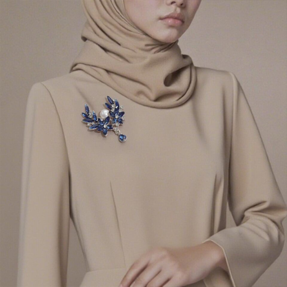 Pearl Floral Brooch with Rhinestones | Elegant Sparkling Design | Versatile Accessory for Women