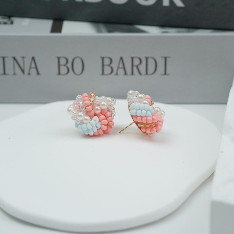 【Stud Earrings】Handmade Beaded Flower Pink & Blue Sweet Daily Earrings for Women