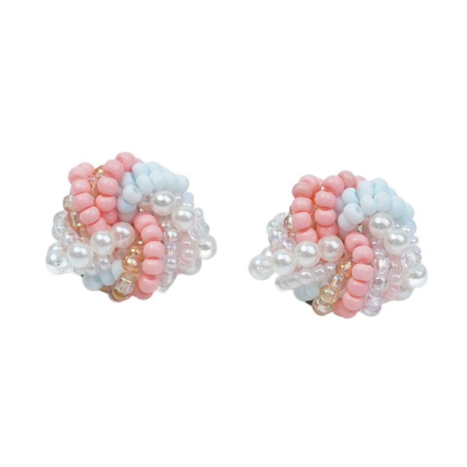 【Stud Earrings】Handmade Pink & Light Blue Resin Beads Earrings, Sweet Floral Cluster, Cute Gift for Girls