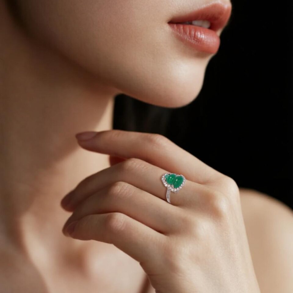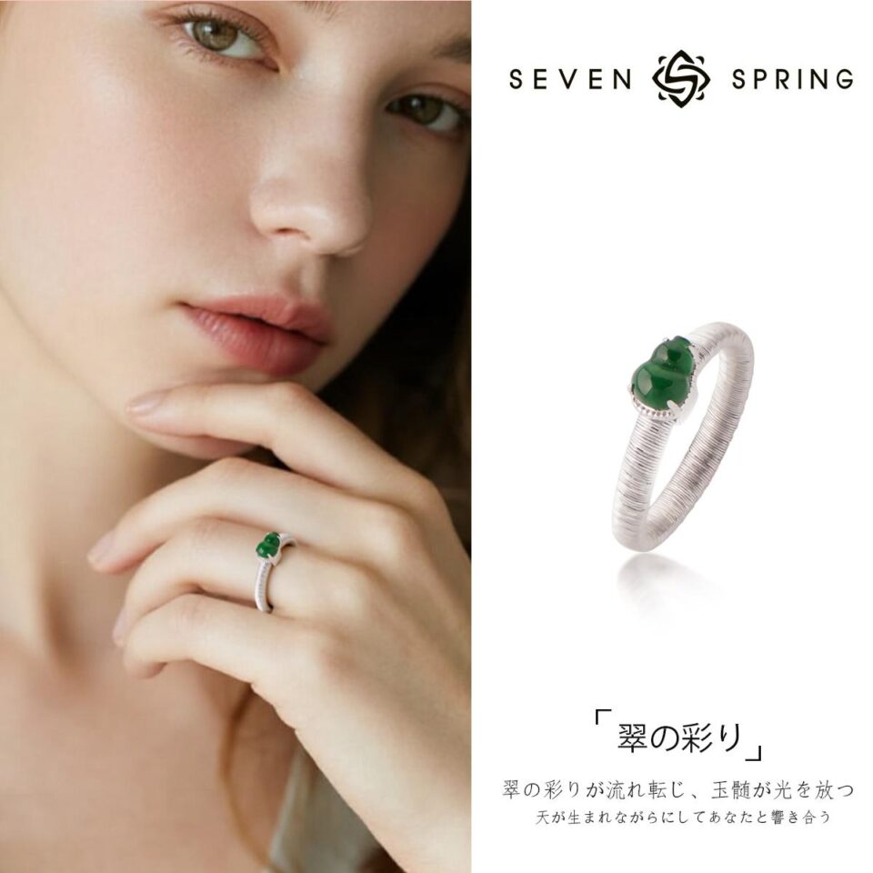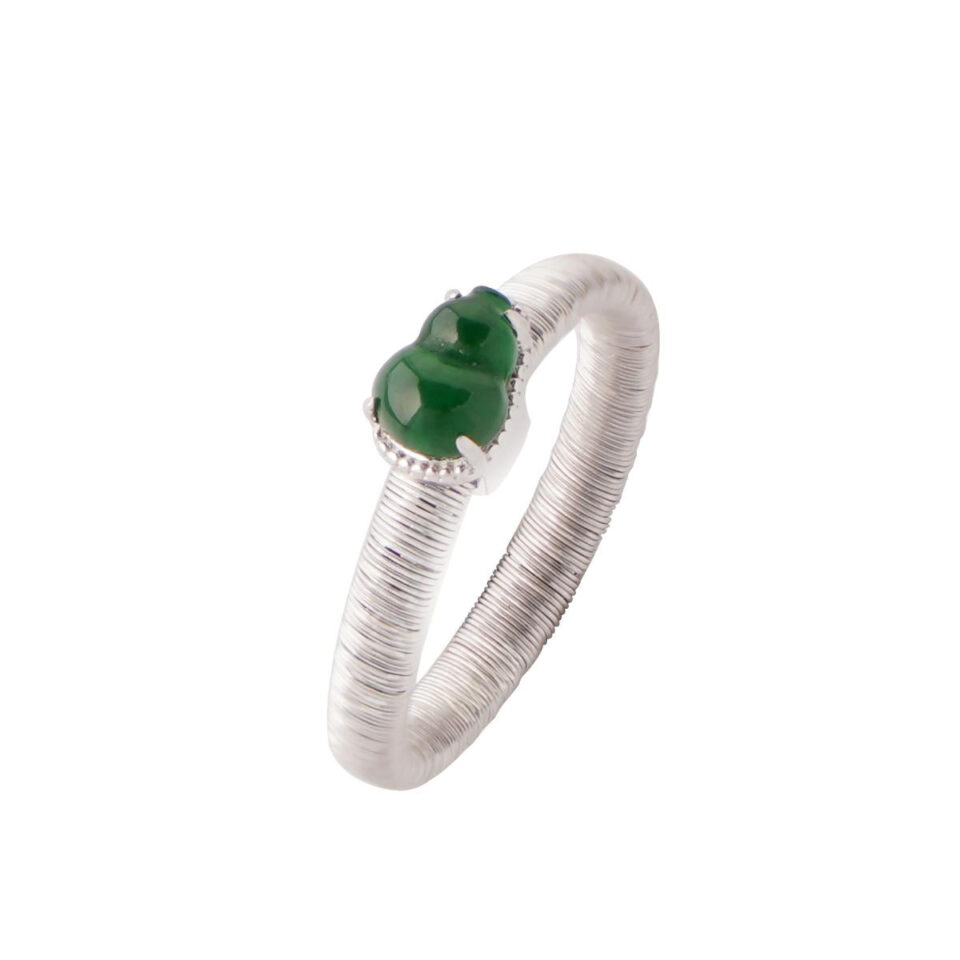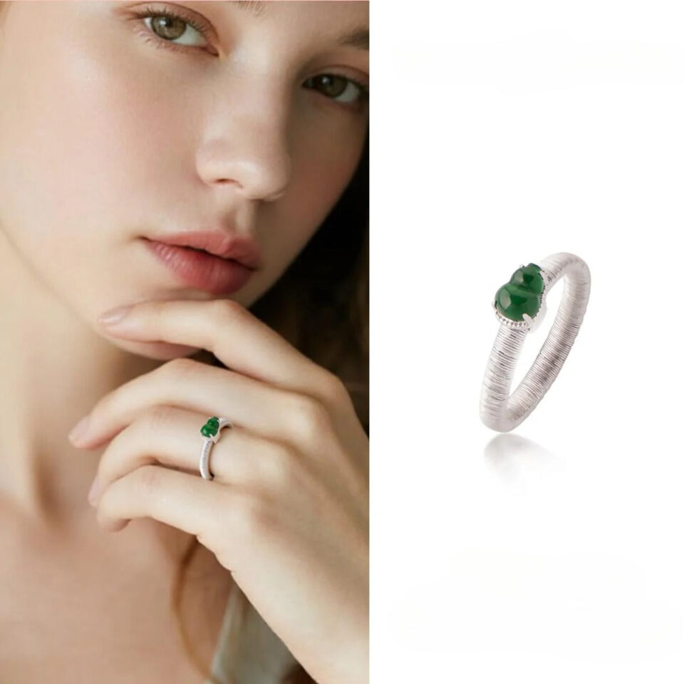 【Ring】S925 Silver Green Jadeite Gourd Ring Lucky Charm Jewelry Elegant Daily Accessory for Women