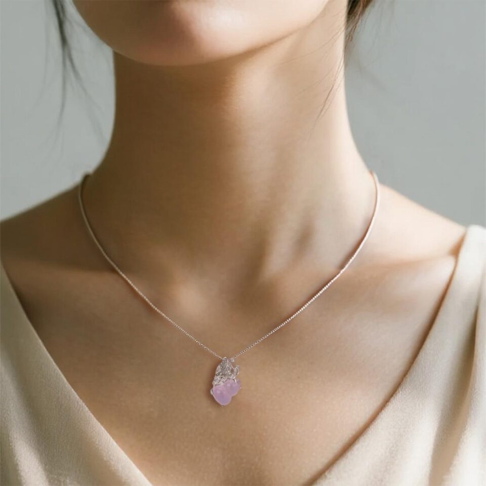 【Pendant Necklace】Lilac Chalcedony Gourd Pendant Necklace with Alloy Chain and Zircon Accents Elegant Lucky Jewelry for Women Graceful Design
