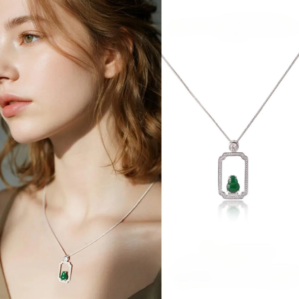 【Pendant Necklace】Shining Zircon Classic Jadeite Pendant Necklace, S925 Chain for Women Skin Care, Perfect Elegant Gift for Lover