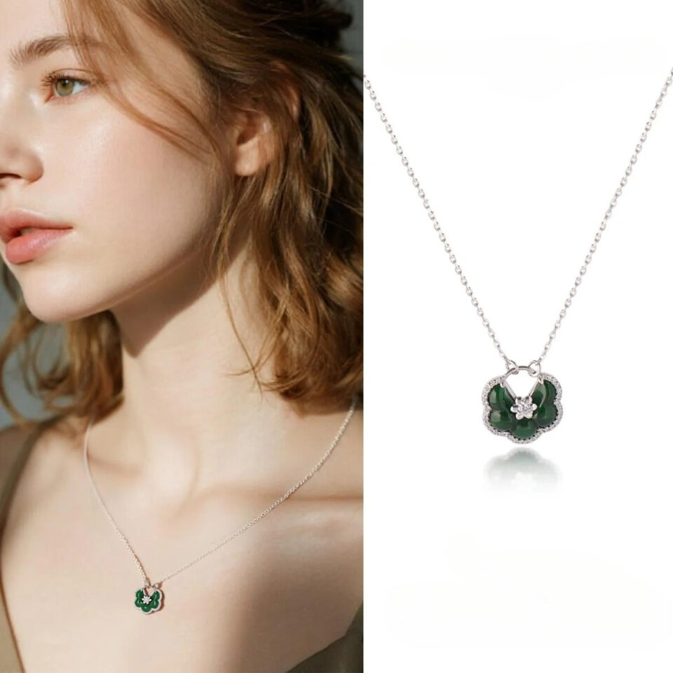 【Pendant Necklace】S925 Sterling Silver Green Jade Flower Pendant with Zirconia Accents, Vintage Floral Jewelry, Elegant Daily Gift for Women