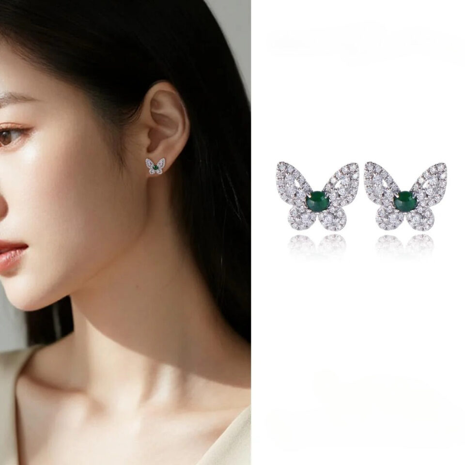【Stud Earrings】Butterfly Design Green Jade Zirconia Cluster Stud Earrings Elegant Nature-Inspired Jewelry wonderful gifts for Women