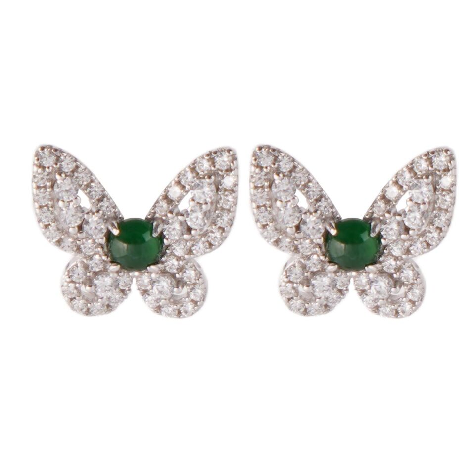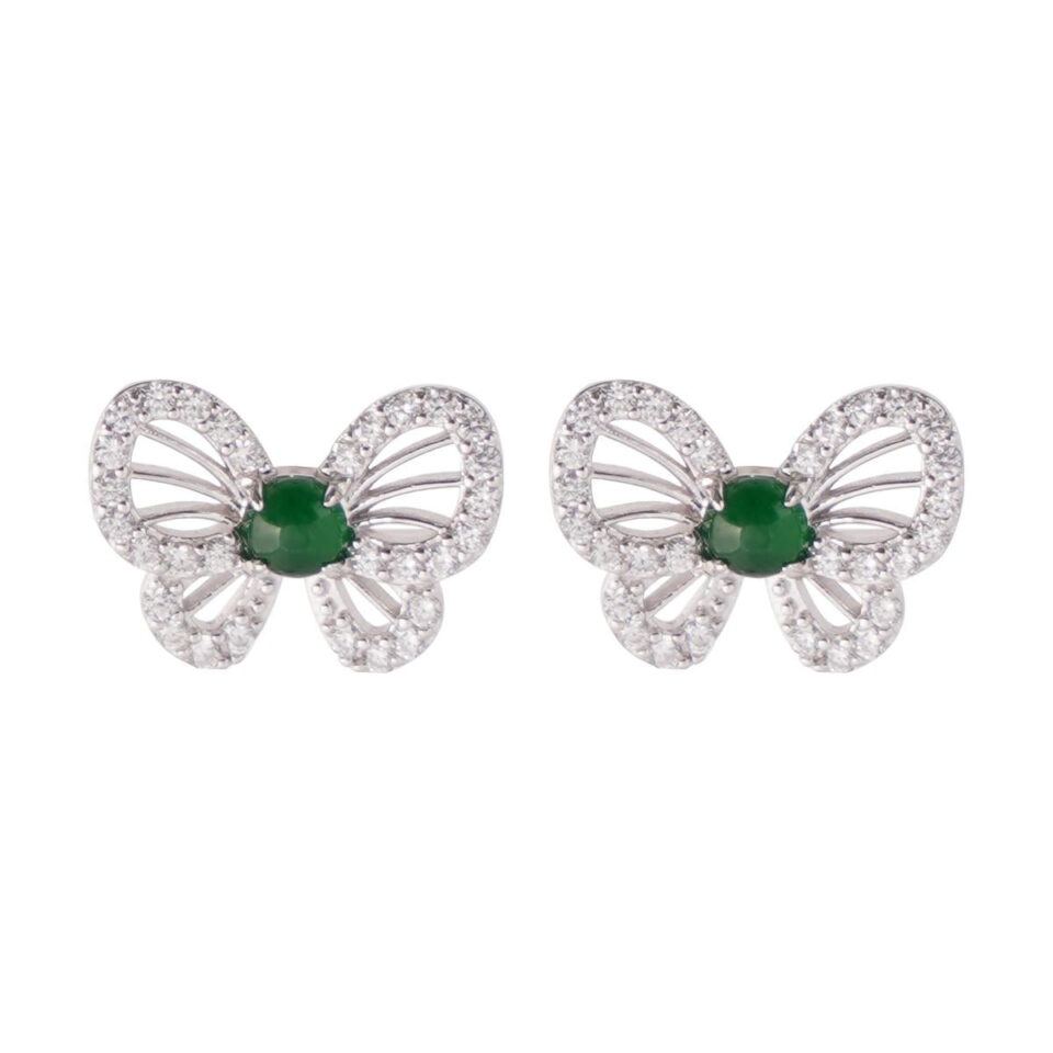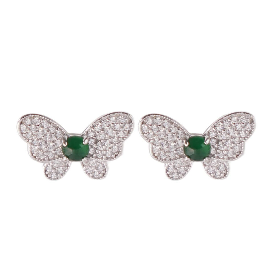 【Stud Earrings】Butterfly Design Green Jade Zirconia Pavé Stud Earrings Elegant Perfect Jewelry Wonderful Gifts for Women