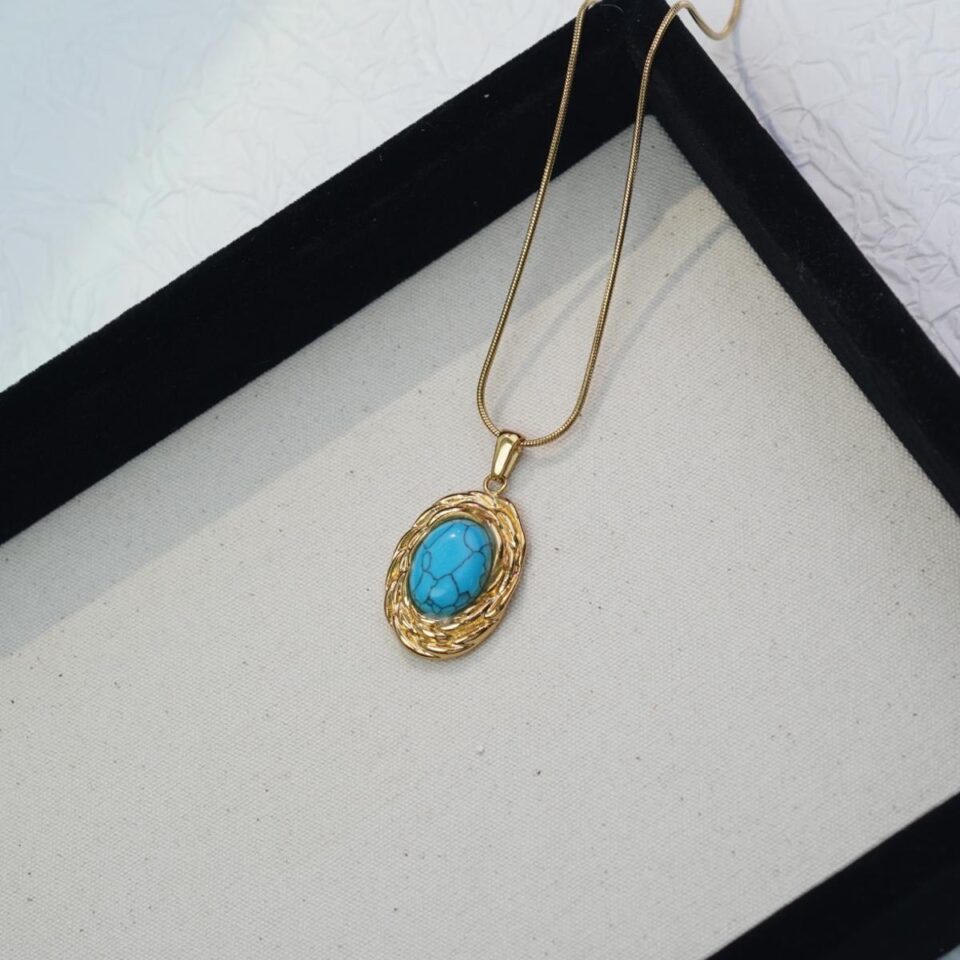 【Necklace】Vintage-Inspired Golden Chain with Turquoise Pendant , Perfect for Retro & Casual Styles