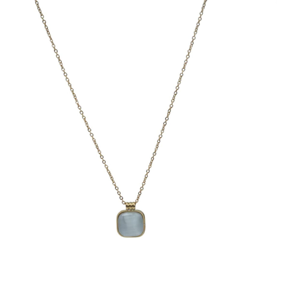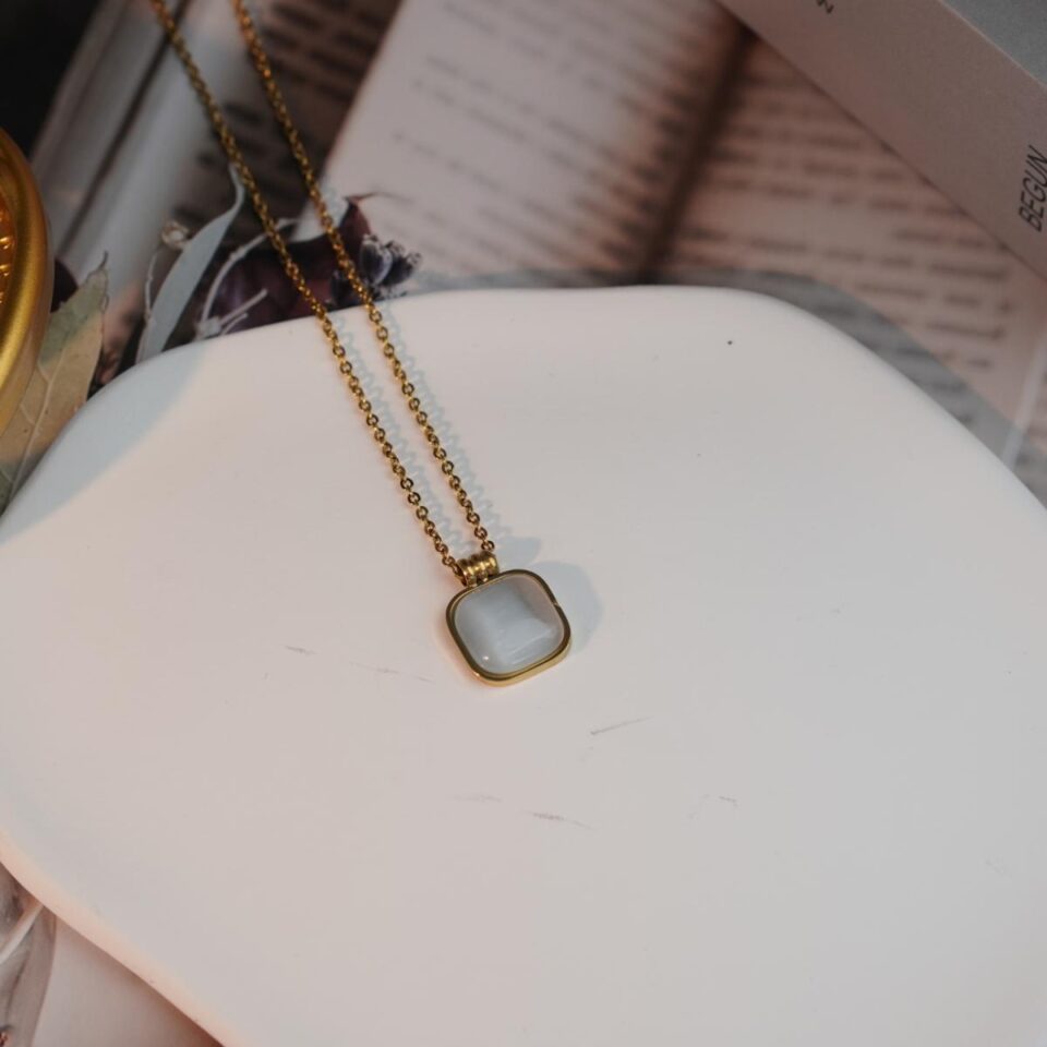 Minimalist Golden Chain Necklace with Square Cat’s Eye Stone Pendant, Elegant Daily Wear for Fashion Women