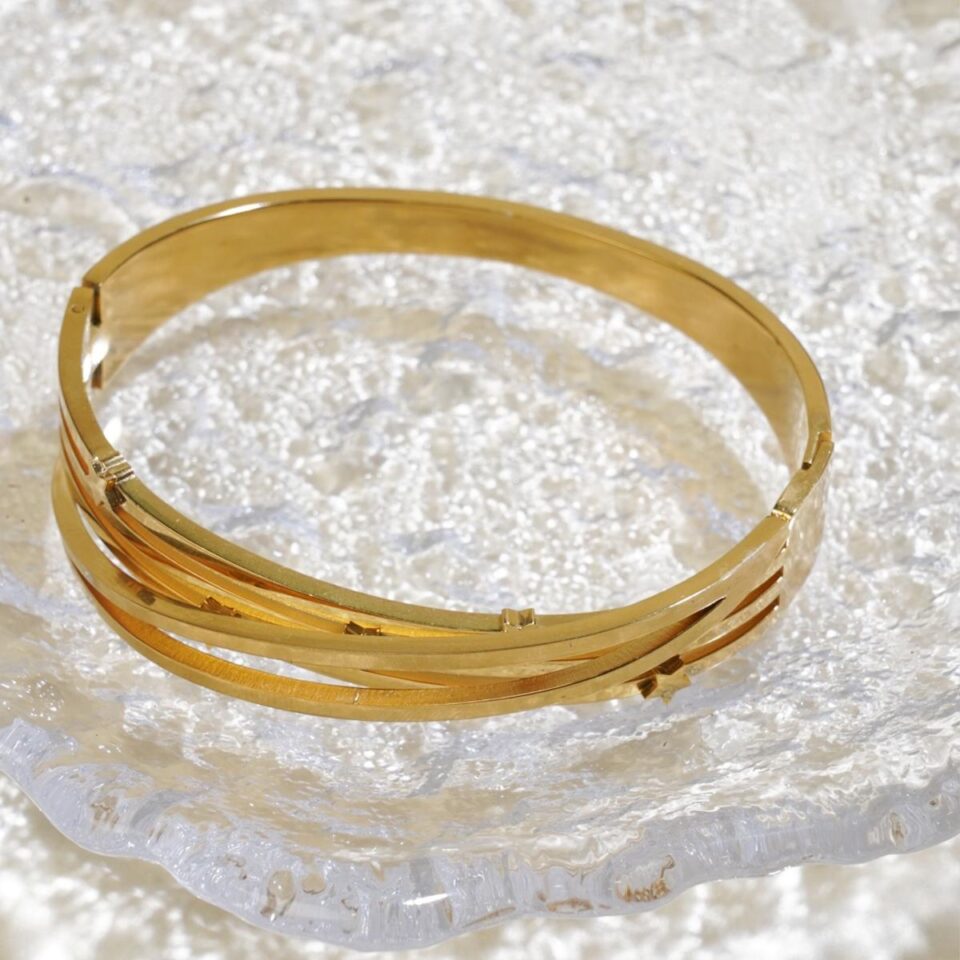 Geometric Stacked Gold-Plated Bracelet for Women – Minimalist Luxe Charm