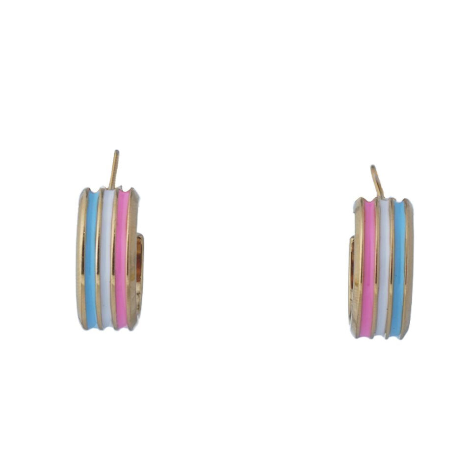 【Hoop Earrings】Alloy Gold-Plated Colorful Enamel Striped Earrings, Cute & Lively Style for Women
