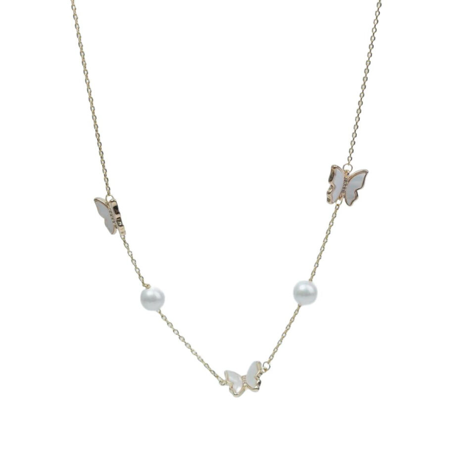【Necklace】Elegant Romantic Necklace with Butterfly Pearl Pendant, Sweet & Vintage Style for Women