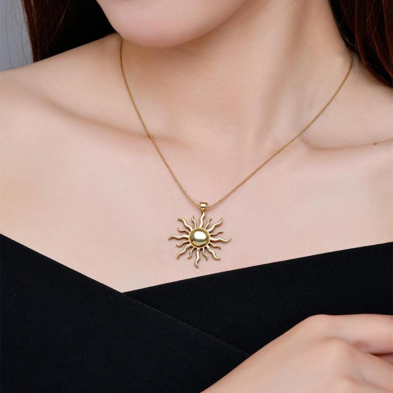 【Pendant Necklace】Stainless Steel Chain with Sun-Shaped Pendant, Vibrant&Warm Style for Fashion Women