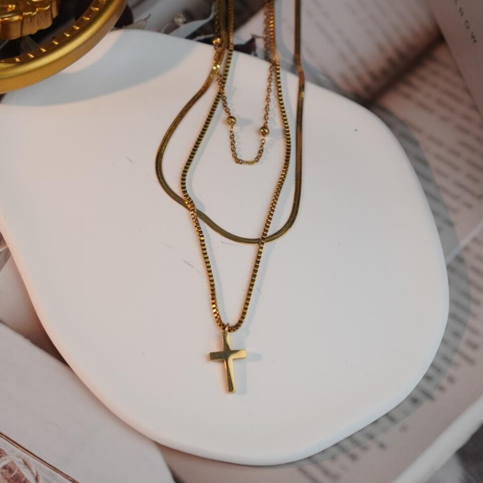 【Necklace】Multi-layer Stainless Steel Necklace with Vintage Cross Pendant, Stylish Stackable Jewelry for Women