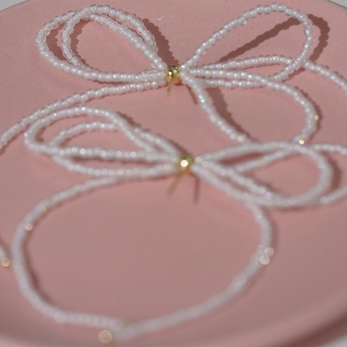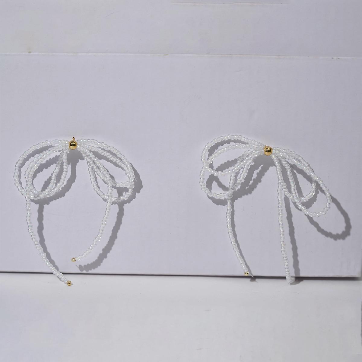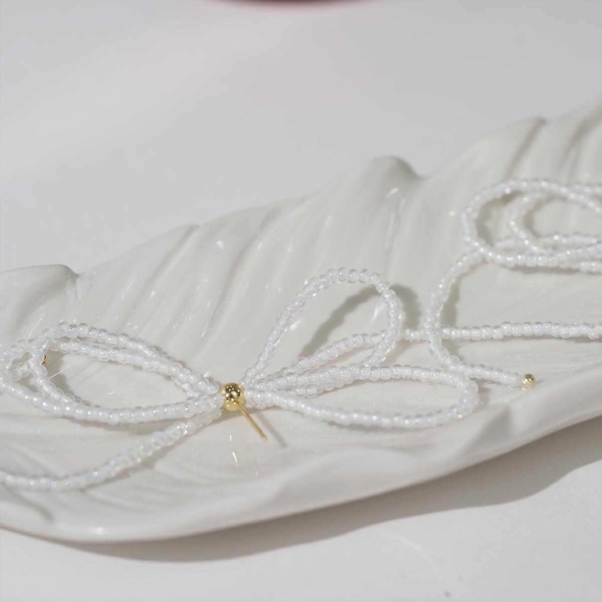 These bow – shaped earrings showcase a unique double – layer bow design. They are meticulously hand – crafted with glossy seed beads, and the main body is made of resin, giving off a gentle and dreamy vibe. The ear pins are made of 925 silver, ensuring both safety and quality.