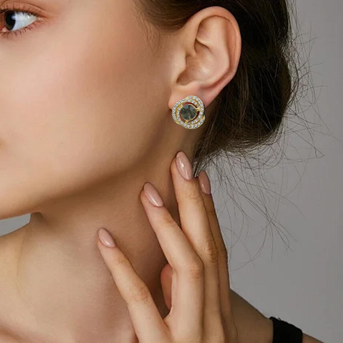 Dark-clear stone contrast creates dimensional depth. Gold accents enhance versatile pairing with neutral tones for evening and daytime settings.