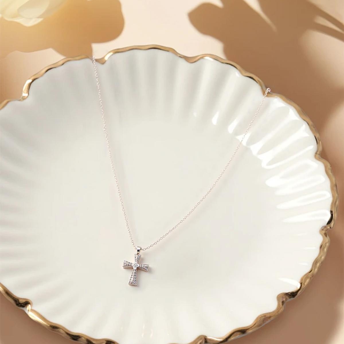 The classic cross design blends symbolic meaning with contemporary elegance, making it suitable for both daily wear and special occasions. It pairs effortlessly with casual tops for subtle refinement or complements evening attire with understated sophistication. The sparkling stones catch light dynamically, adding visual interest to minimalist outfits while maintaining versatile wearability across diverse settings.