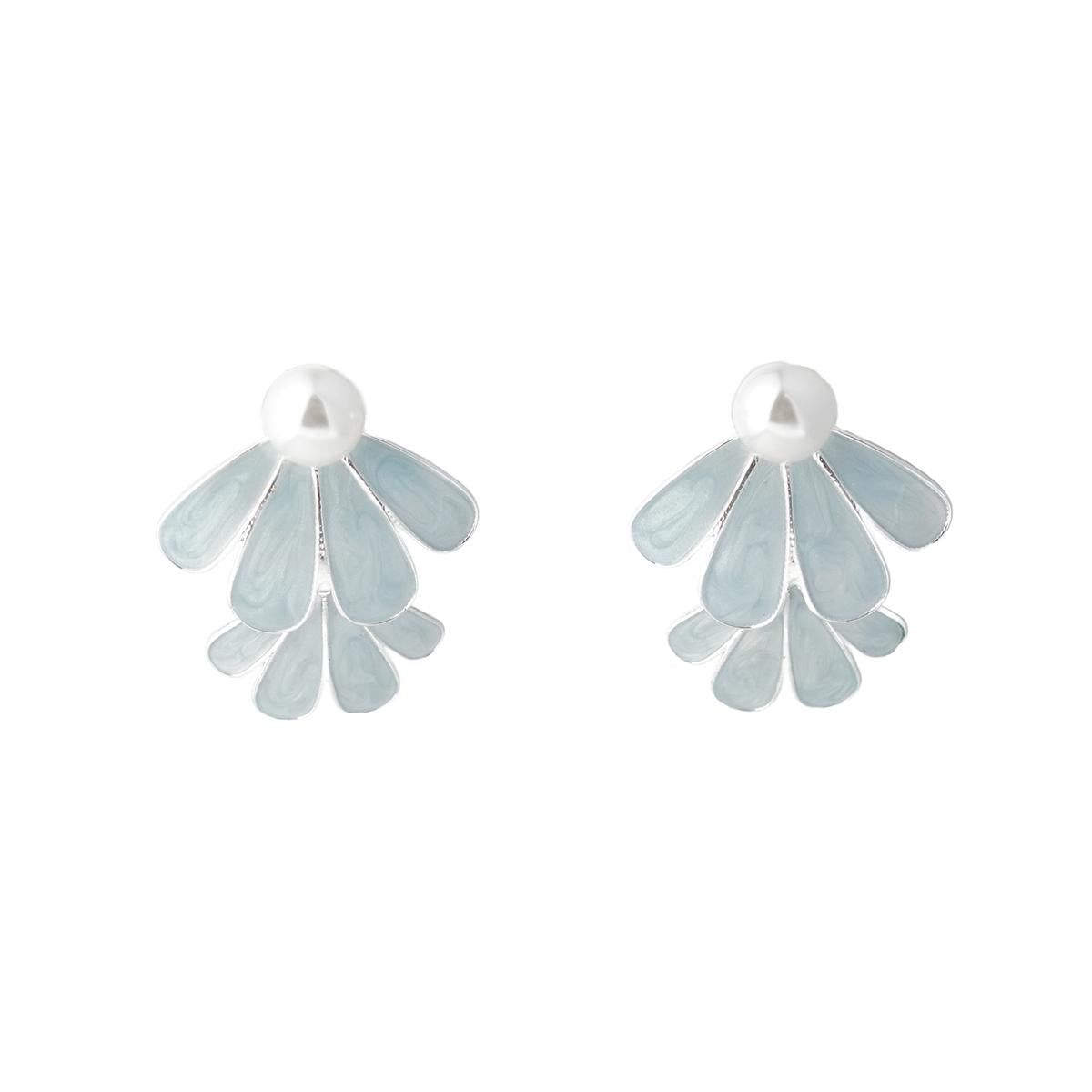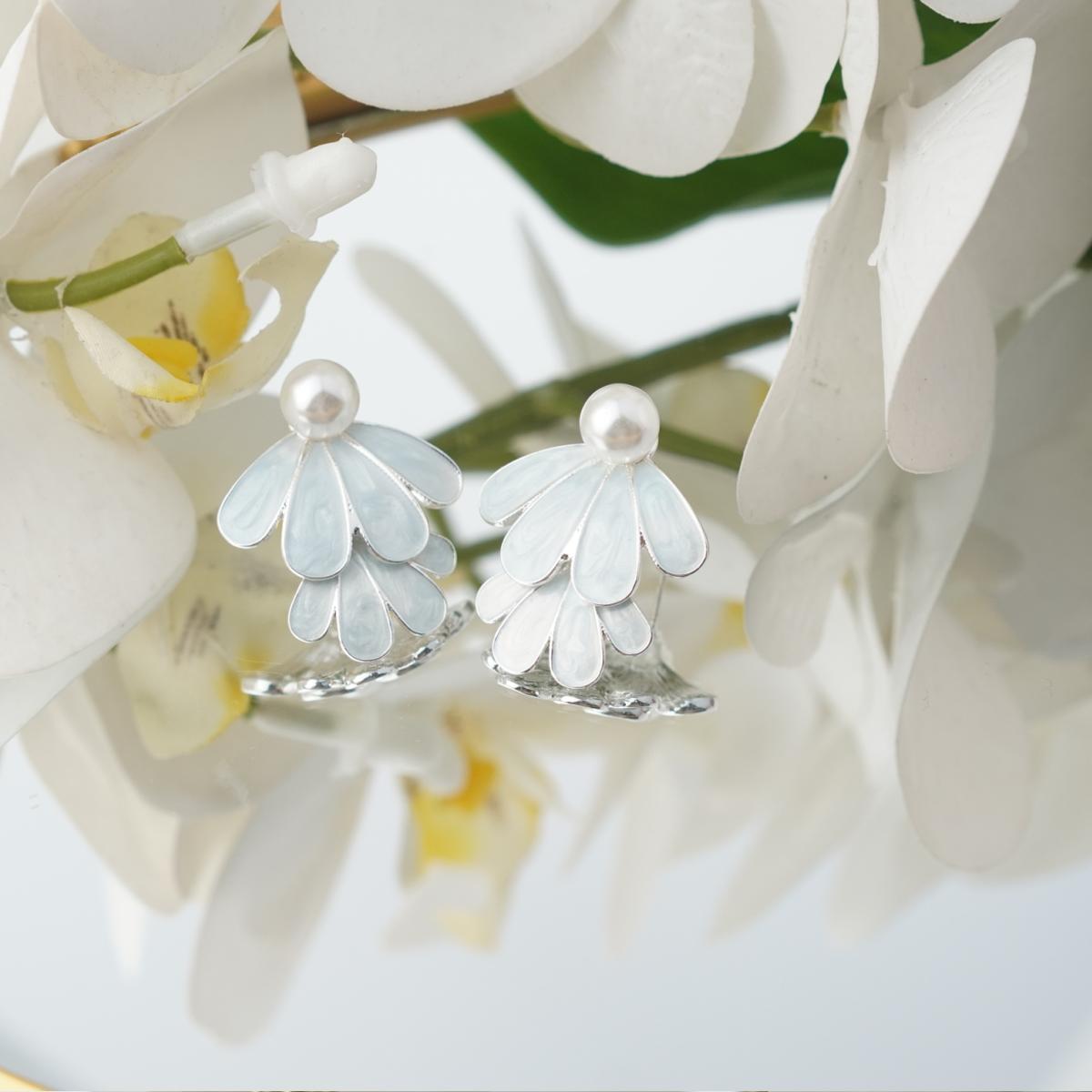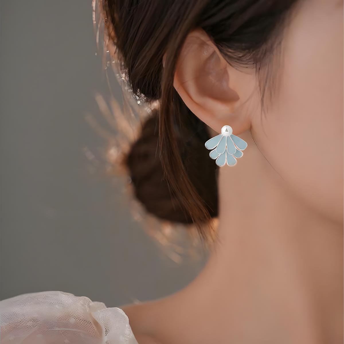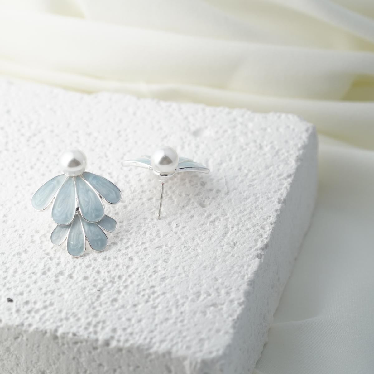 【Stud Earrings】Blue Petal & Pearl Flower Earrings, Fresh & Romantic, Ideal for Women Loving Nature – Inspired Styles