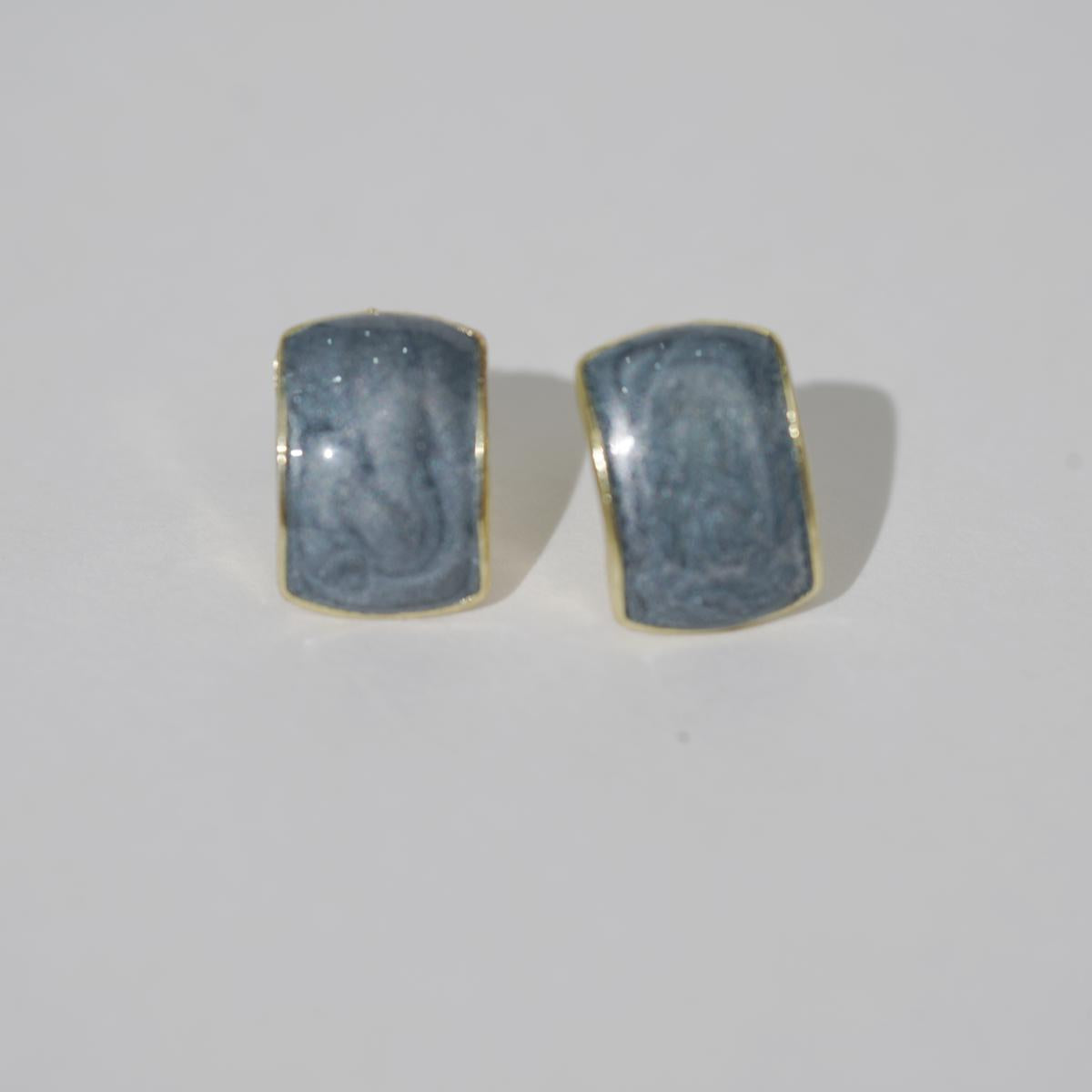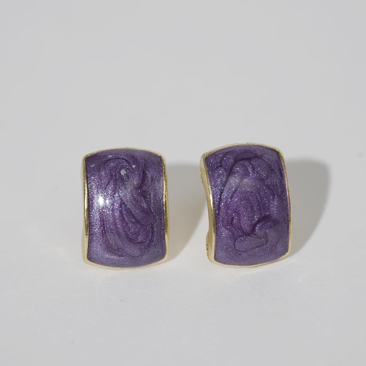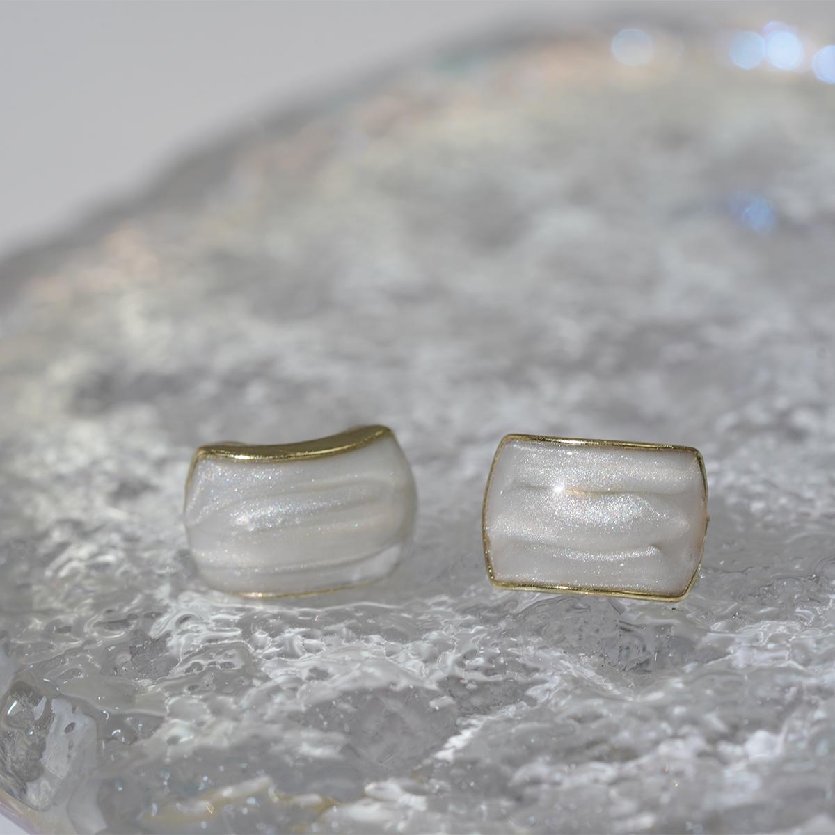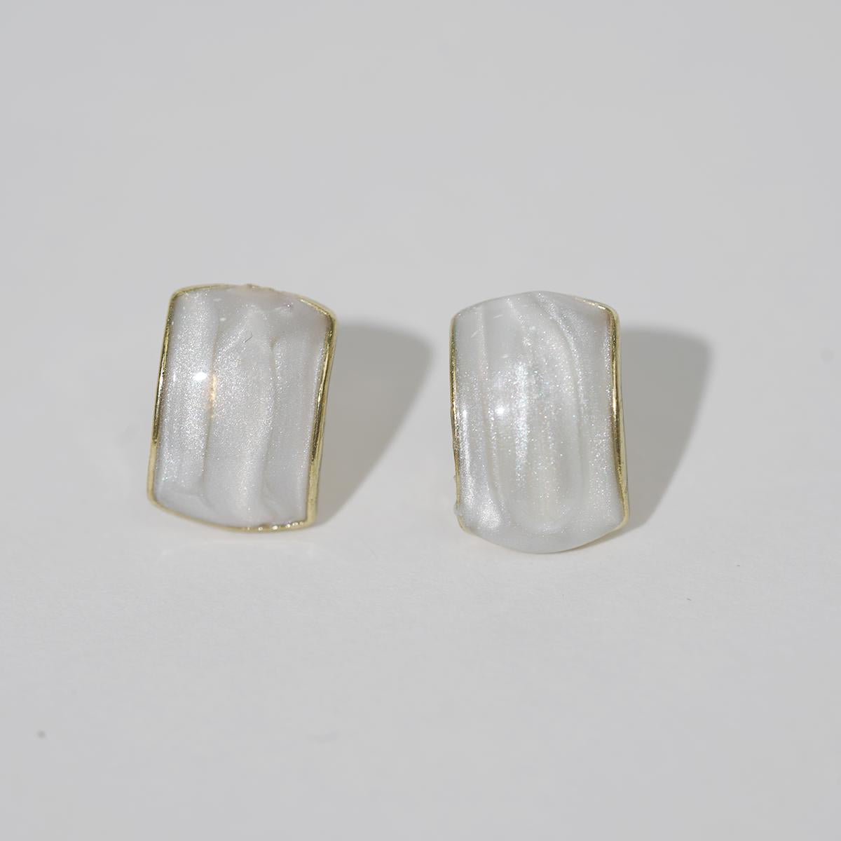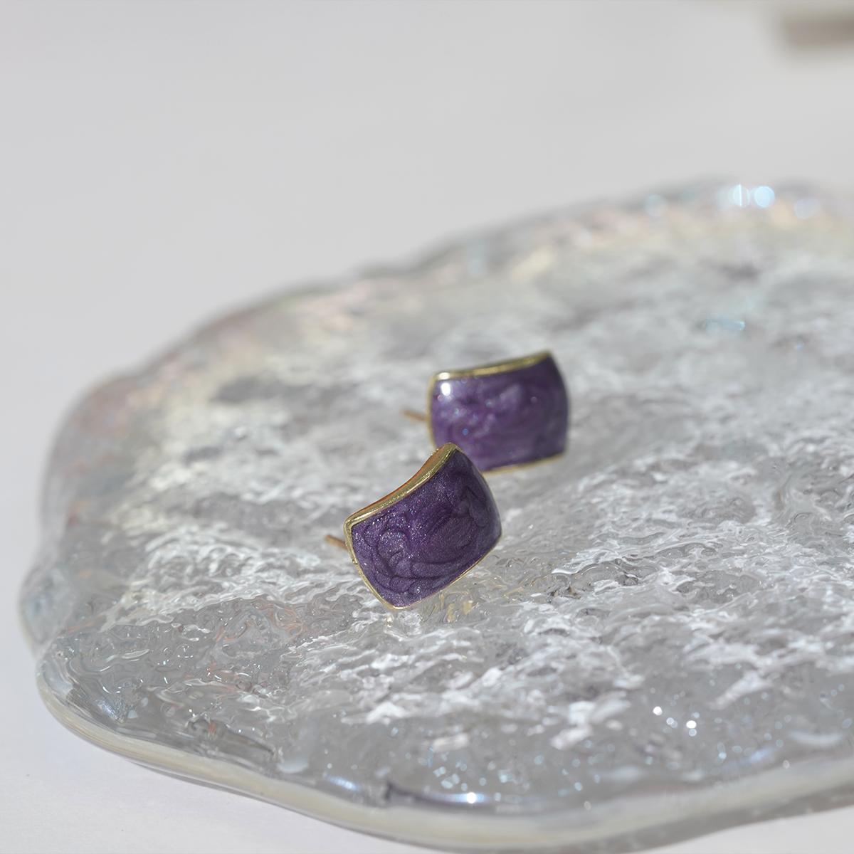 These stud earrings feature a rounded square glittery resin center framed by a delicate alloy border. The resin, available in four alluring shades — purple, red, white, and blue-gray — is infused with fine glitter particles that catch light beautifully, creating a subtle yet enchanting glow. The alloy edge adds a refined metallic contrast to the resin’s soft, shimmering texture.