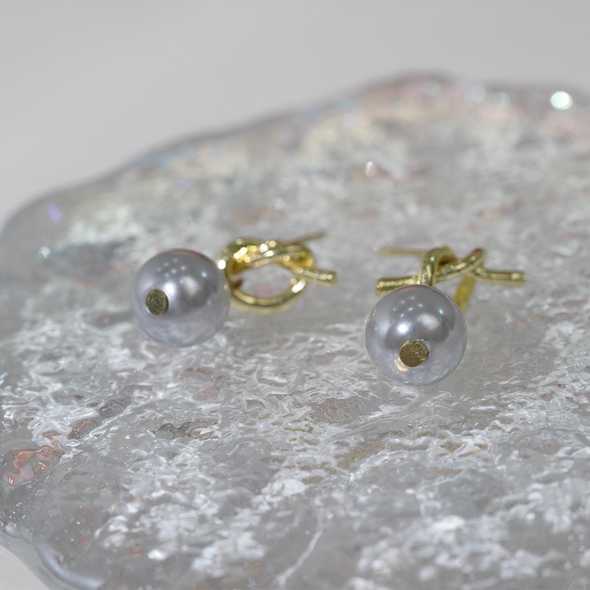 Crafted with alloy in warm gold, these stud earrings showcase a delicate knot – shaped design. The dangling silver – gray pearls are round and plump, boasting a pearly luster that forms an elegant contrast with the gold metal.