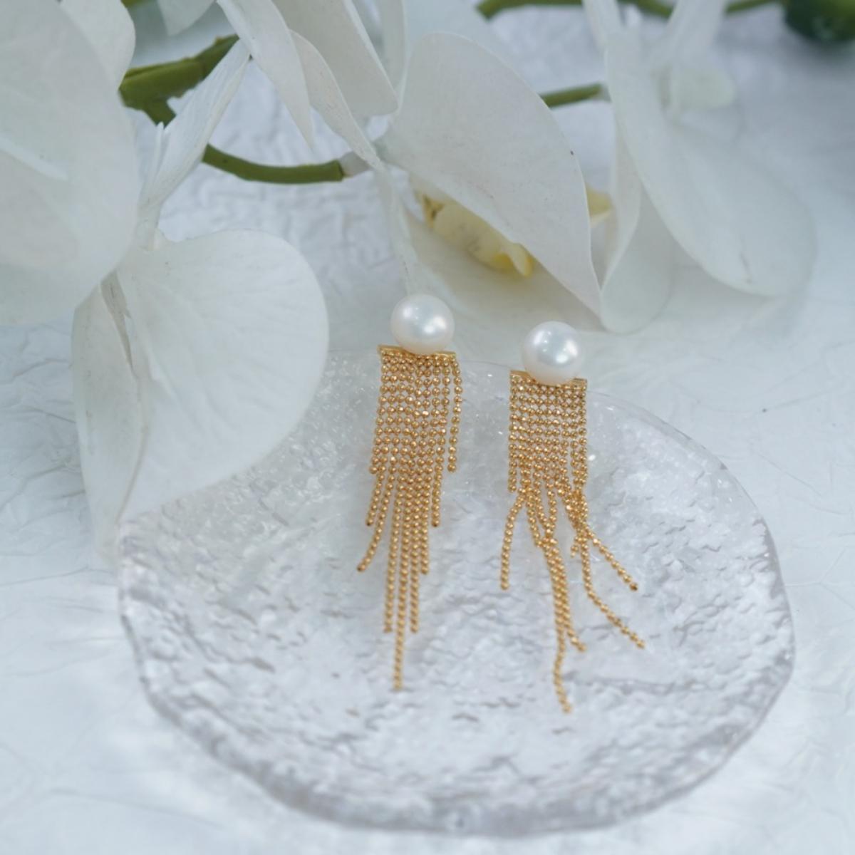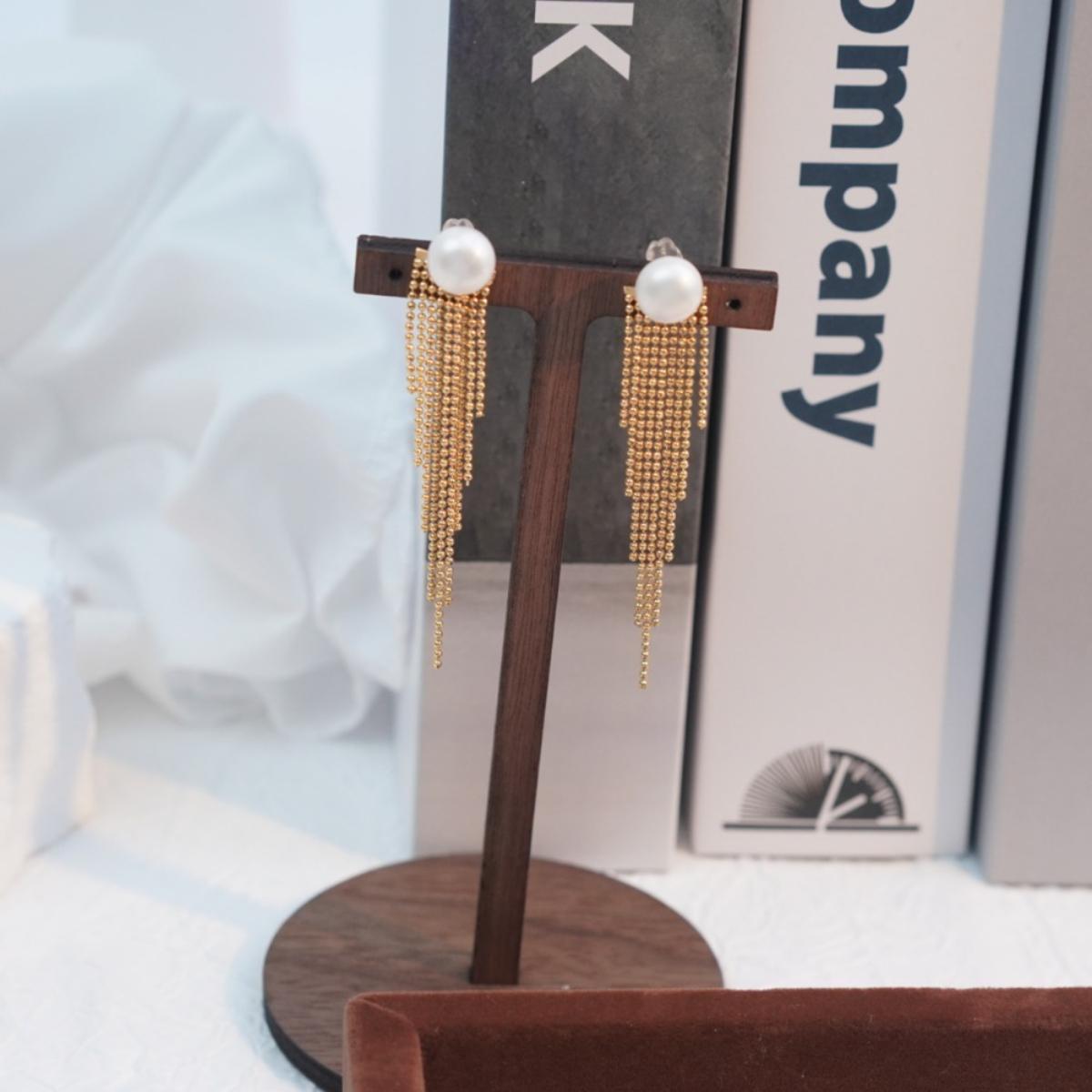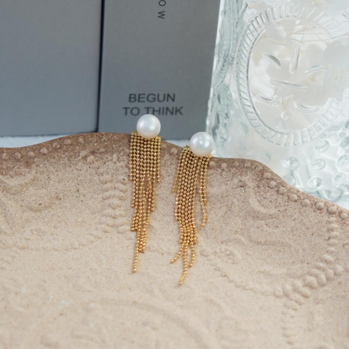 Elegant Design Blend:These earrings merge classic and trendy aesthetics. A top – set pearl exudes gentle grace, complemented by 18K gold – plated copper chain tassels that add a touch of dynamic glamour. As you move, the tassels sway delicately, creating an alluring visual effect.