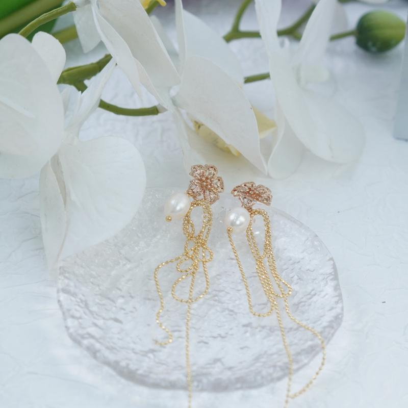 Textured matte petals ground the design for professional settings, while cascading bead chains add kinetic elegance for social events. Gold-and-pearl contrast bridges casual and formal aesthetics, harmonizing with warm/cool wardrobes across seasons.