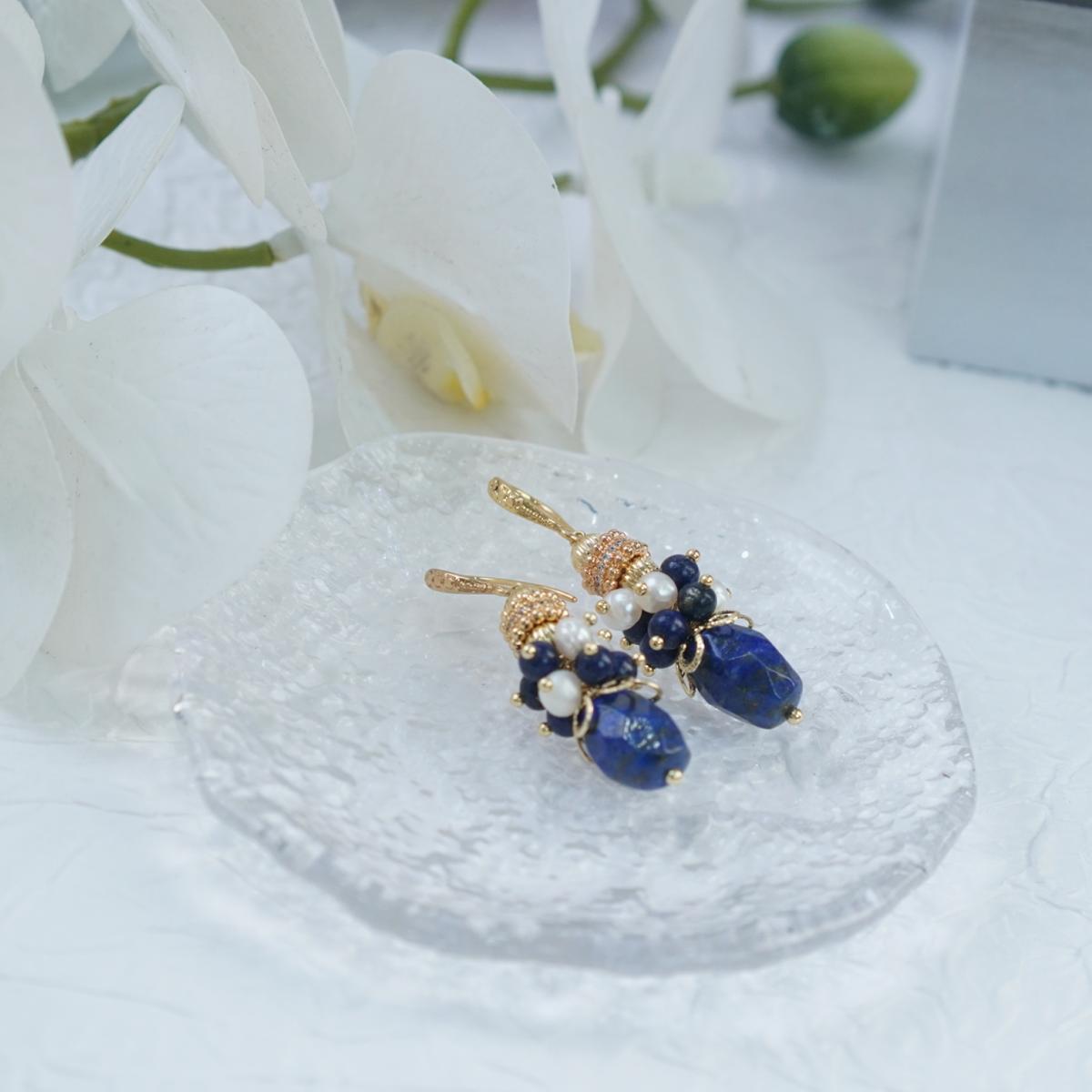 Pearls lend a gentle elegance, while lapis lazuli infuses an air of mystery. 18K gold