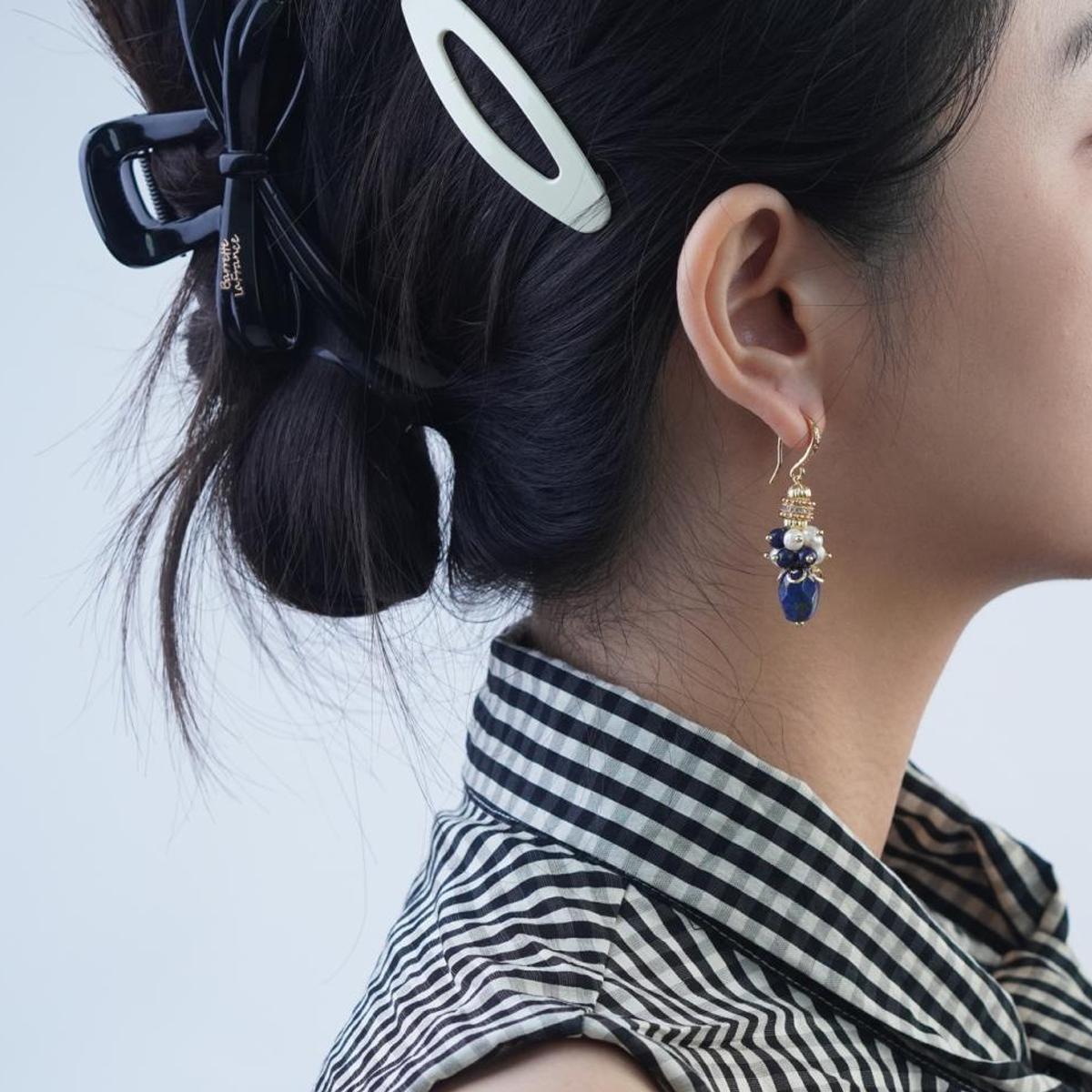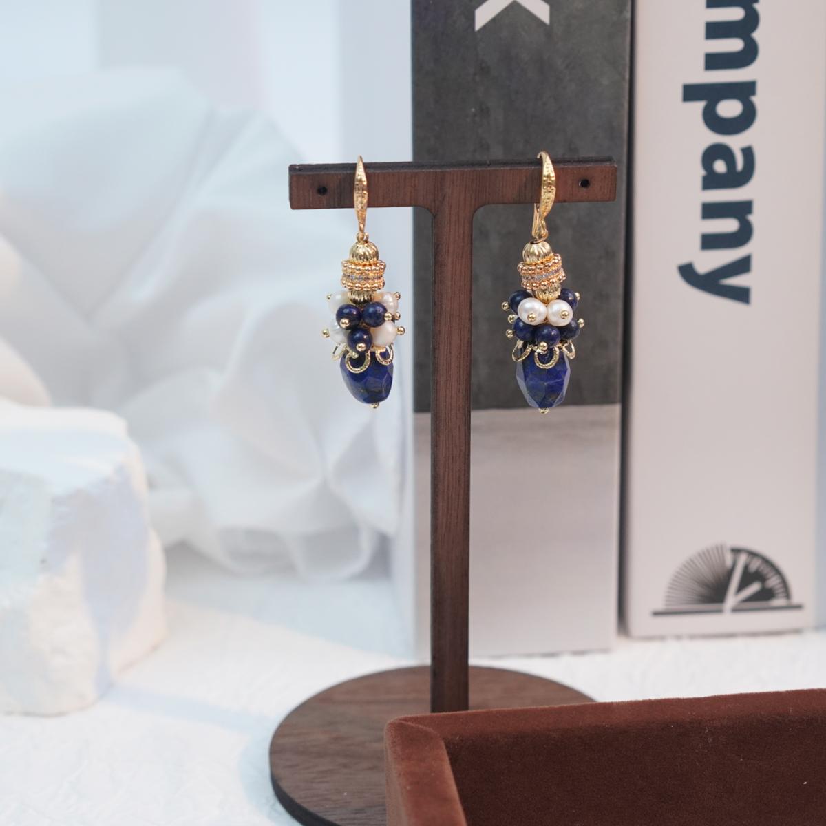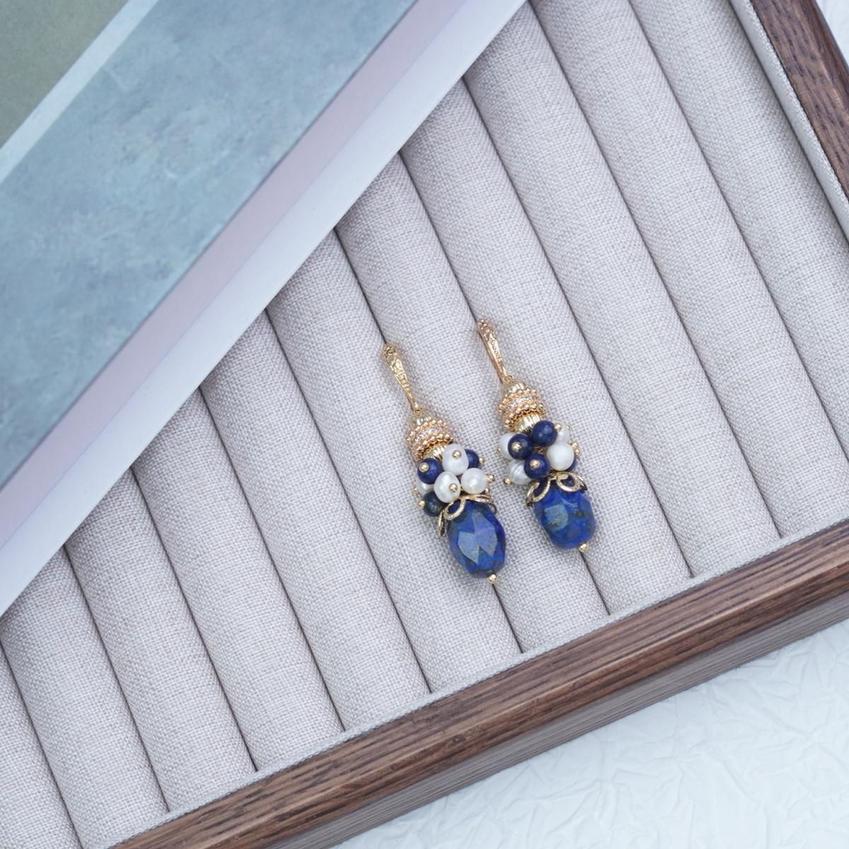 This set fuses lustrous pearls, deep – hued lapis lazuli, and 18K gold – plated copper. The necklace and earrings showcase a cohesive blue – and – white color palette, crafted with exquisite attention to detail. Each piece marries natural allure and metallic sophistication, forming a wearable work of art.