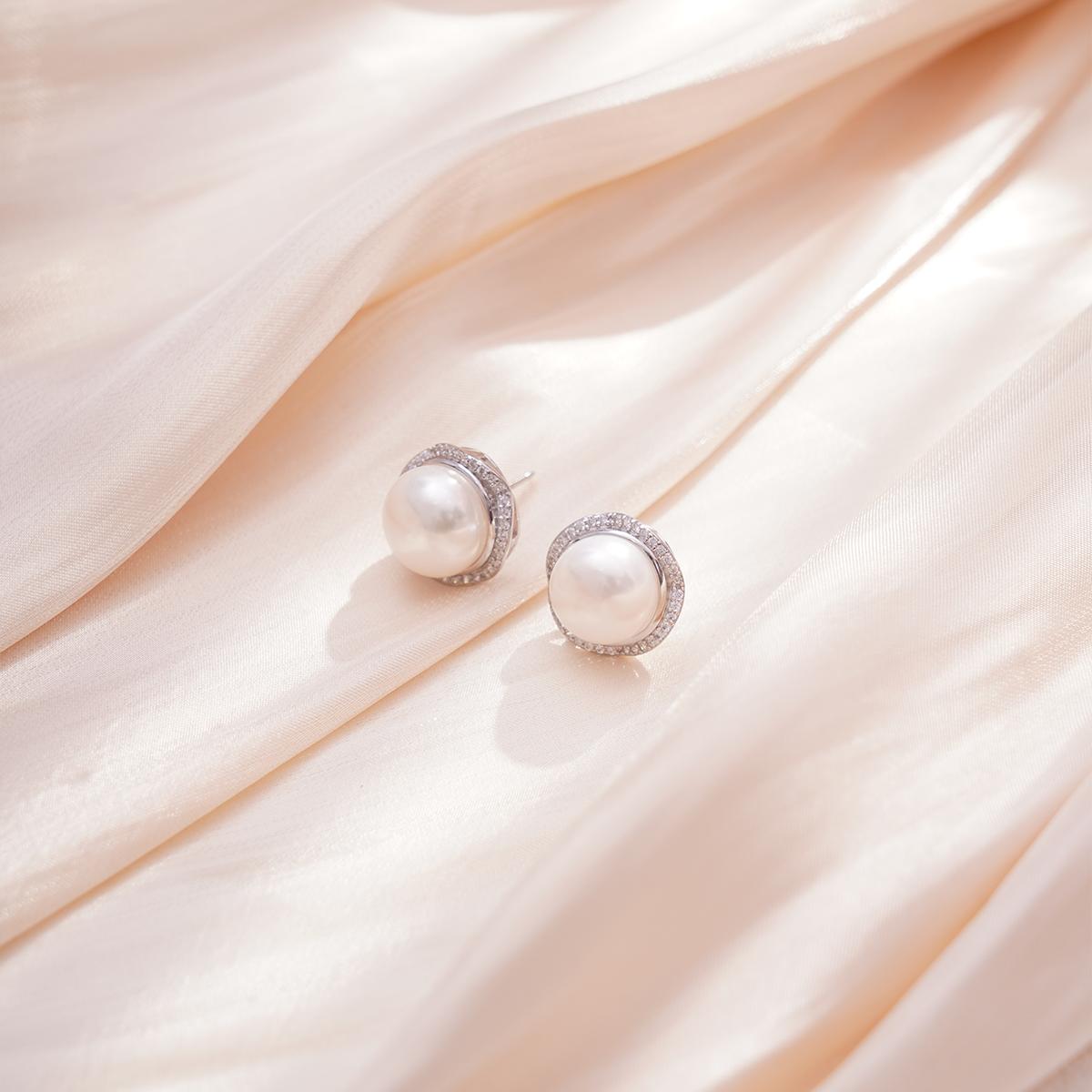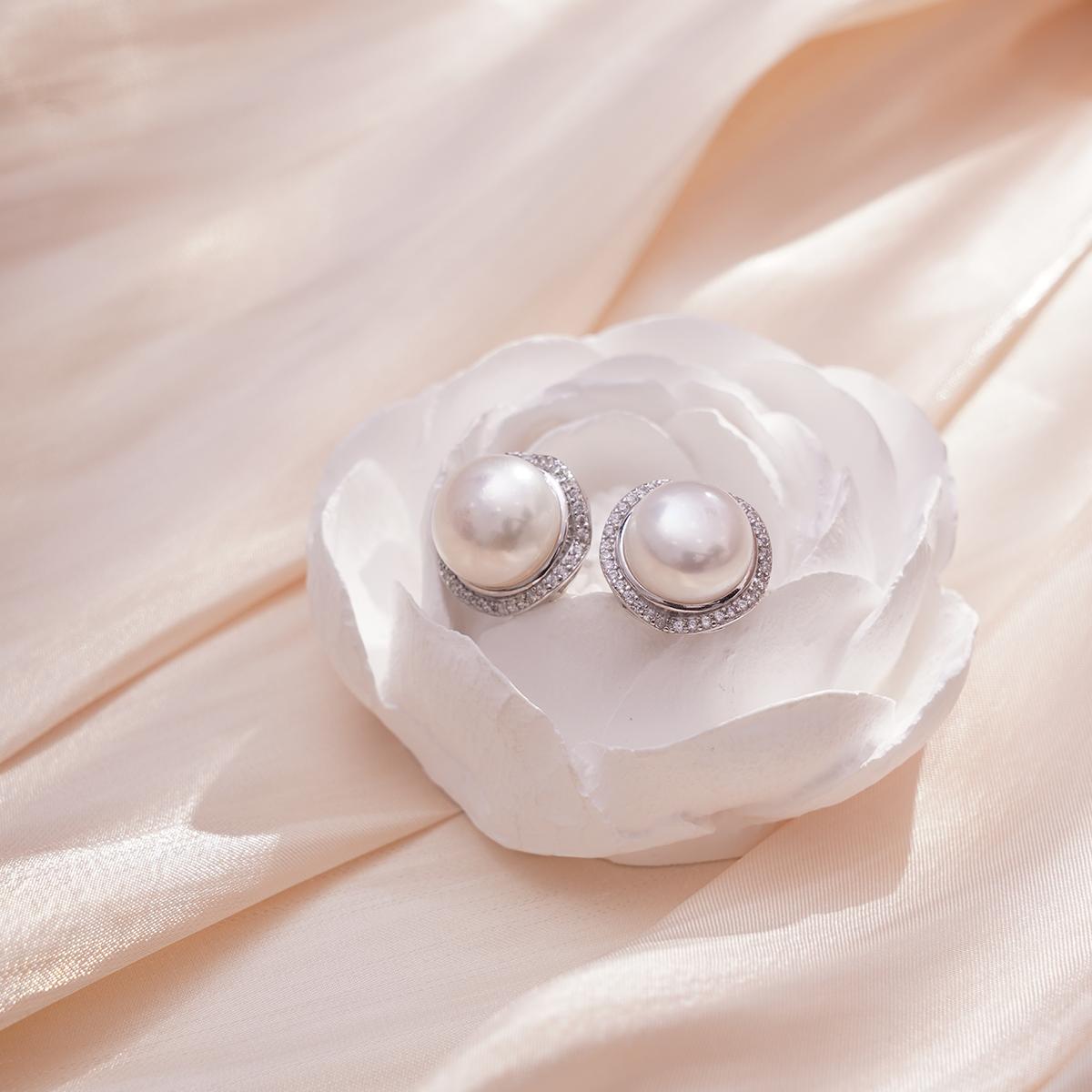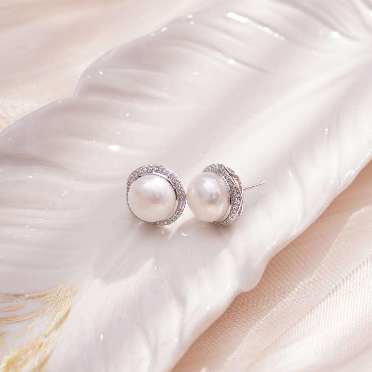 【Stud Earring】Shining Natural Pearl Silver Stud Earring with Zircon, Modern Fashion Accessory for Ladies, Classic type