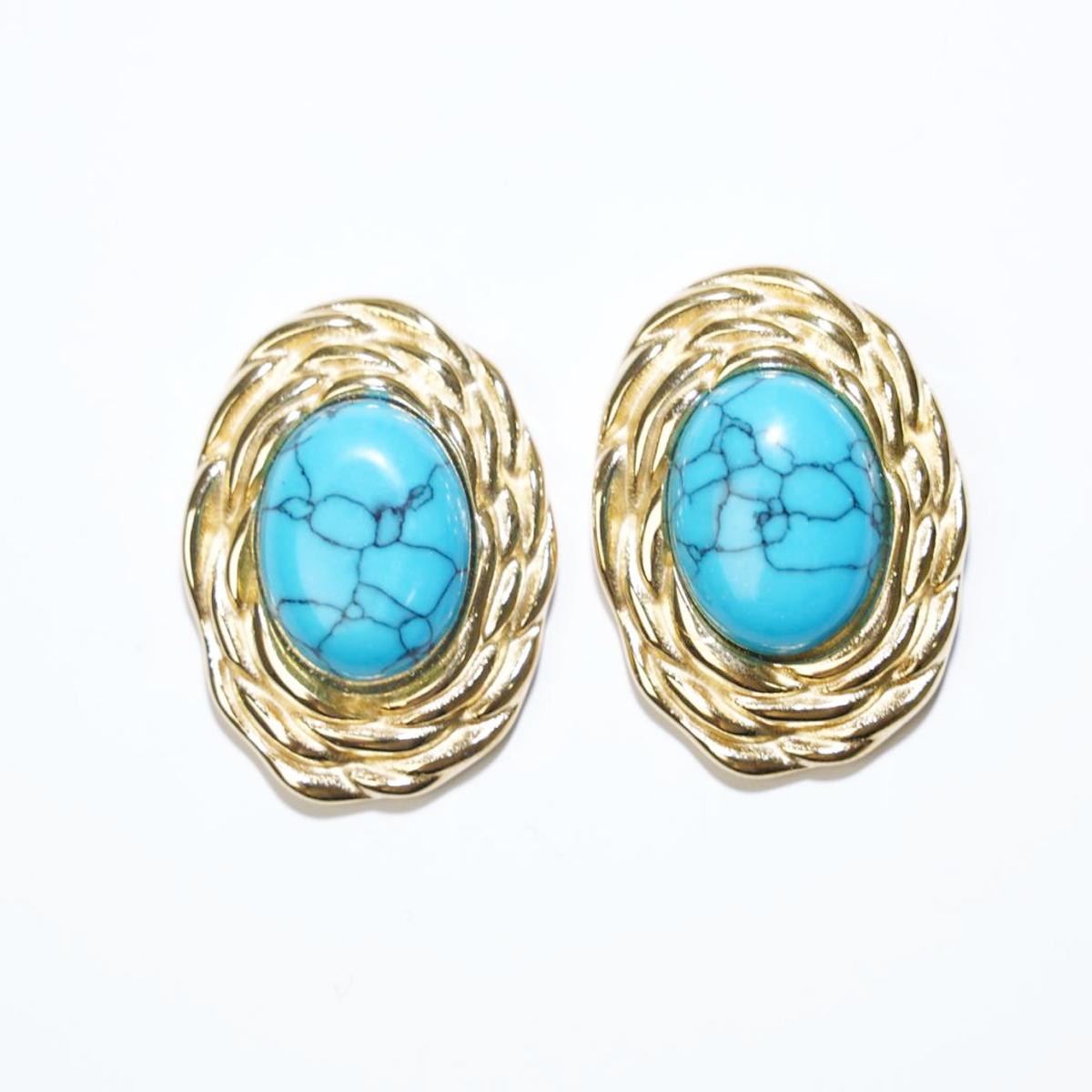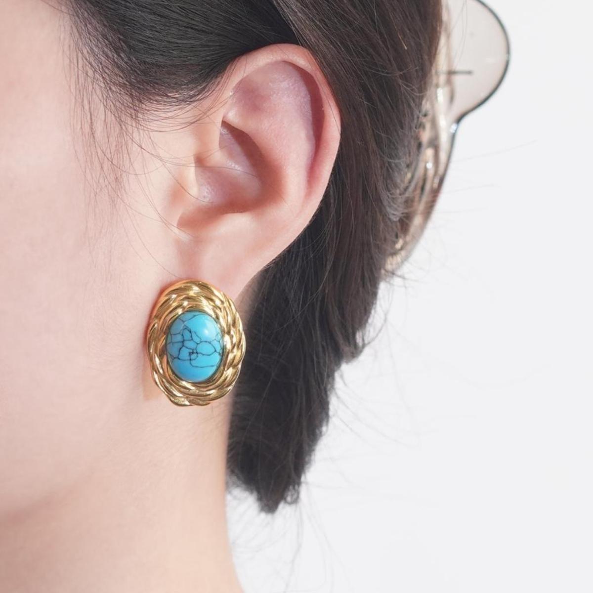 Design & Materials: These earrings feature turquoise as the main stone, with its natural texture and beautiful color. The gold – alloy metal is crafted into a nest – like structure, surrounding the turquoise to highlight the gem and add design layers. The posts are made of 925 silver for a comfortable fit.