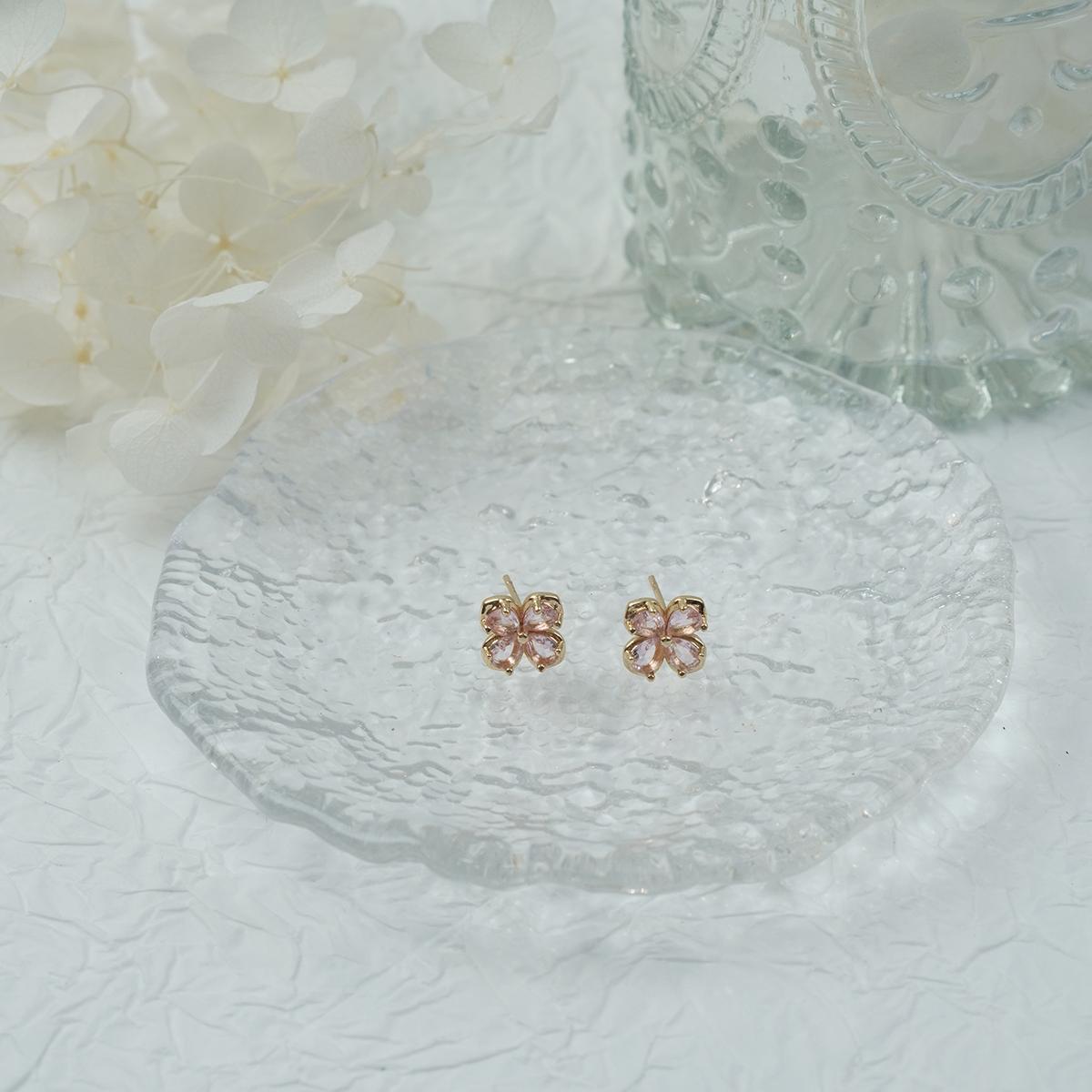 【Stud Earrings] Light Pink Zircon Four Petal Flower Earrings, Sweet & Delicate For Gentle Ladies